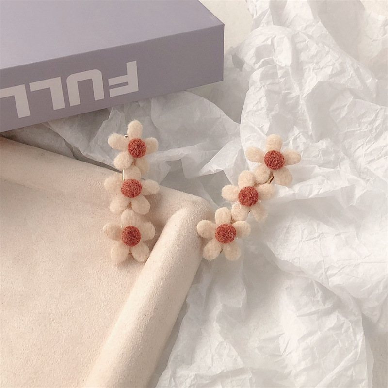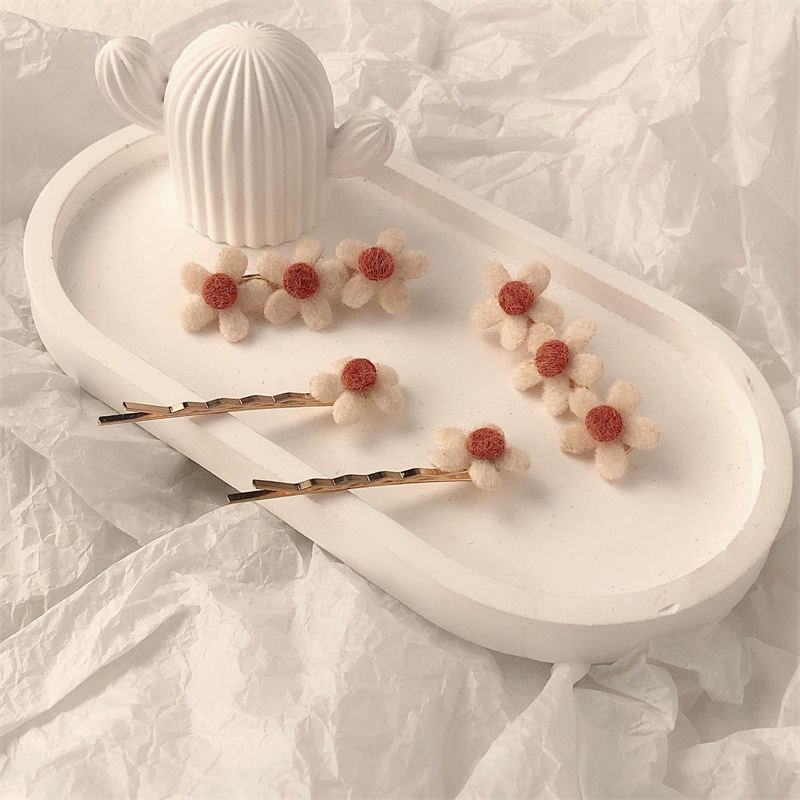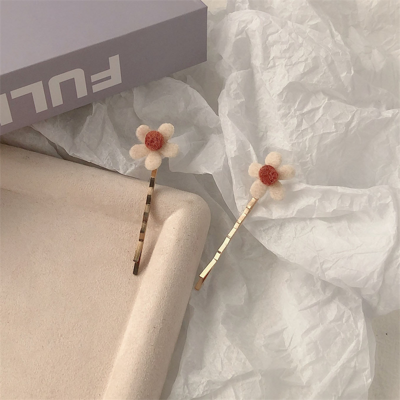 花朵毛毛绒发夹 小发卡可爱头饰边夹彩色少女夹子韩国成人发饰