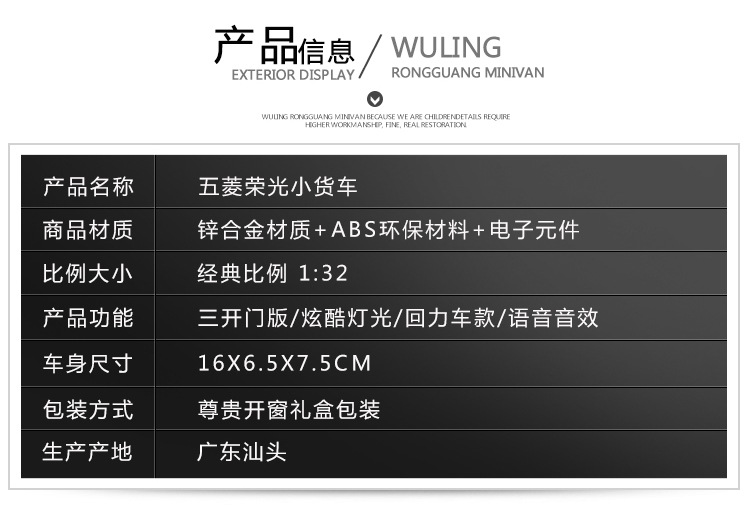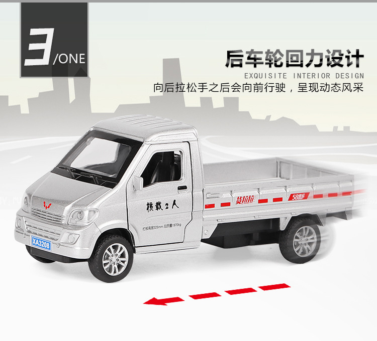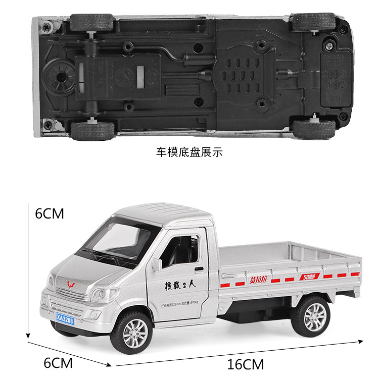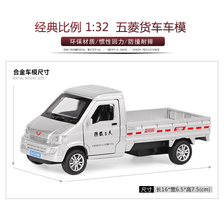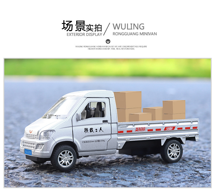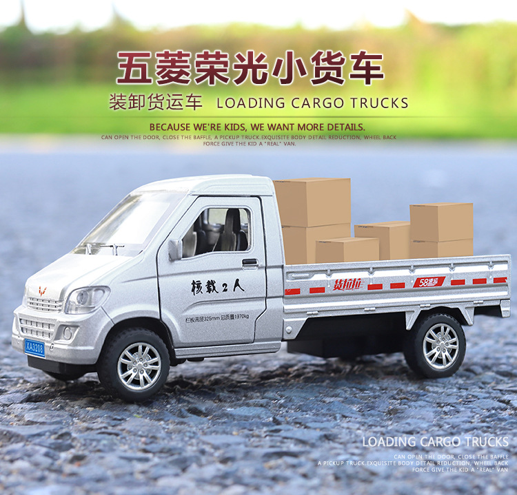 1:32柳州五菱荣光仿真合金运输货车多开门声光回力模型小卡车