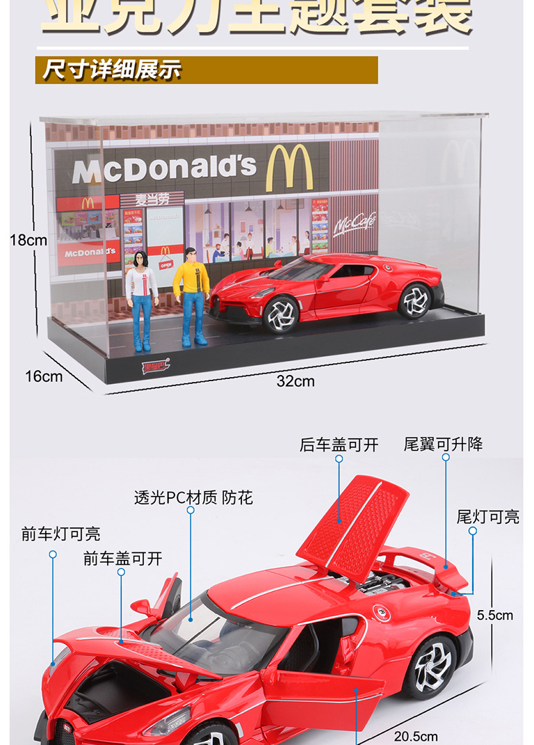 1:24麦当劳主题场景模型场景彩盒装生日礼物仿真合金汽车收藏版