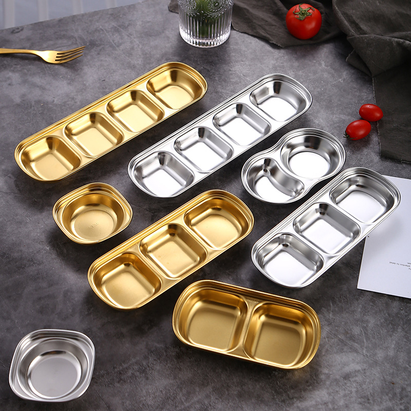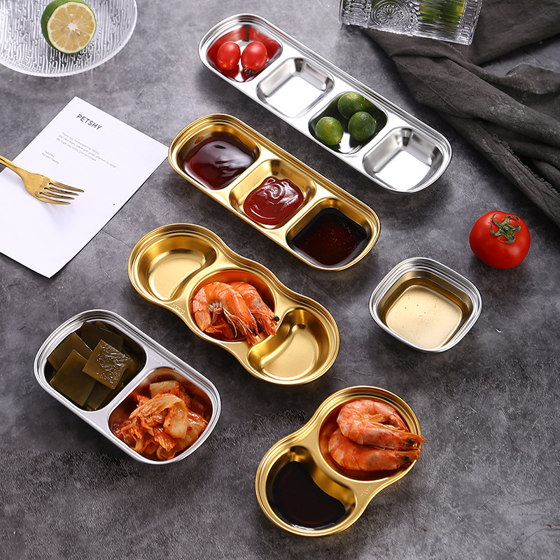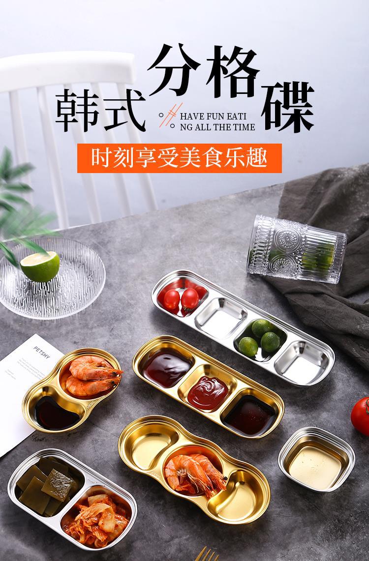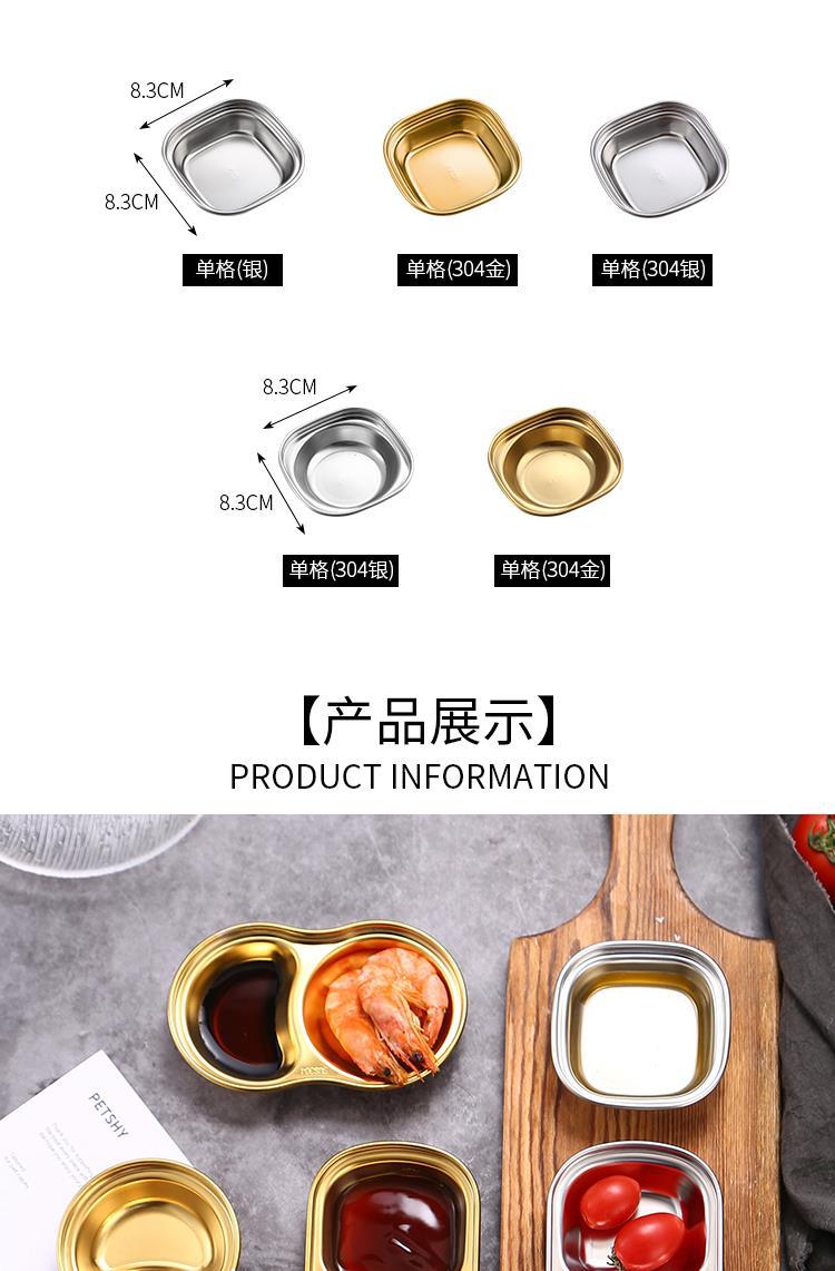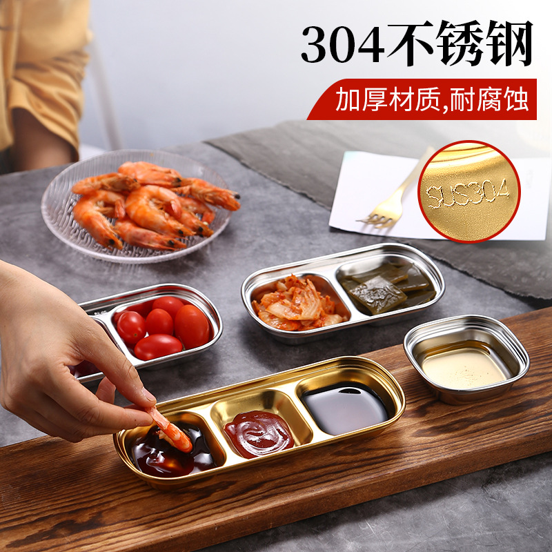 304不锈钢味碟金色蘸料碟餐厅火锅调料韩式碟酱料碟烤肉餐具多格