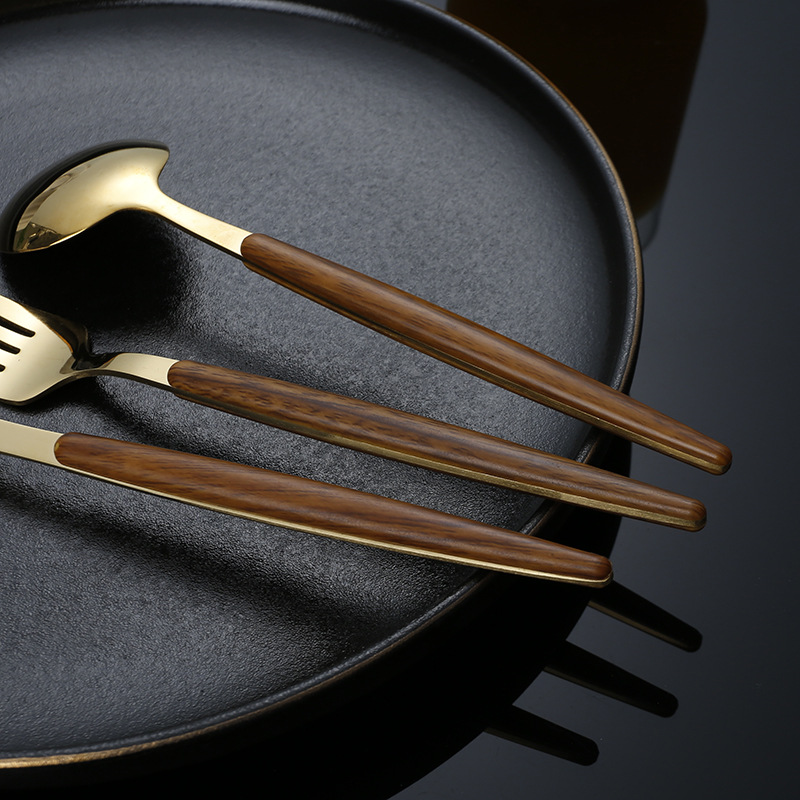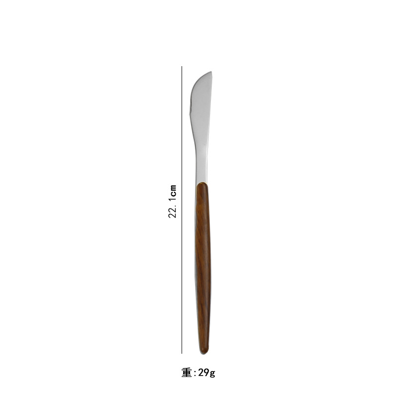 葡萄牙西餐餐具塑料手柄仿复古木纹牛排刀叉勺家用意面甜品刀叉勺