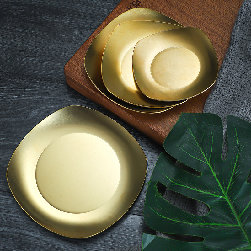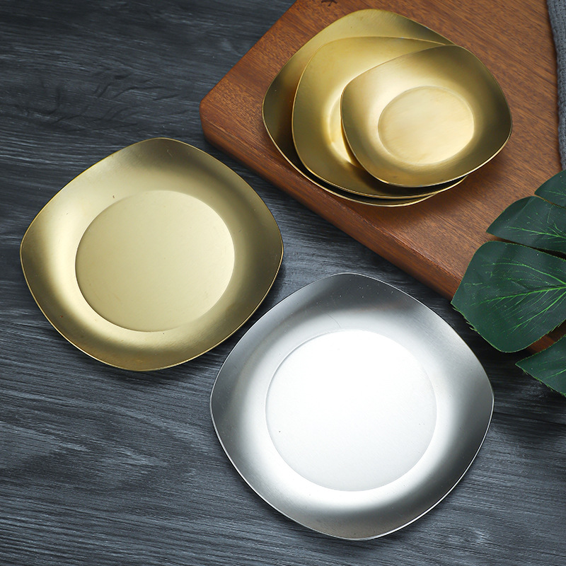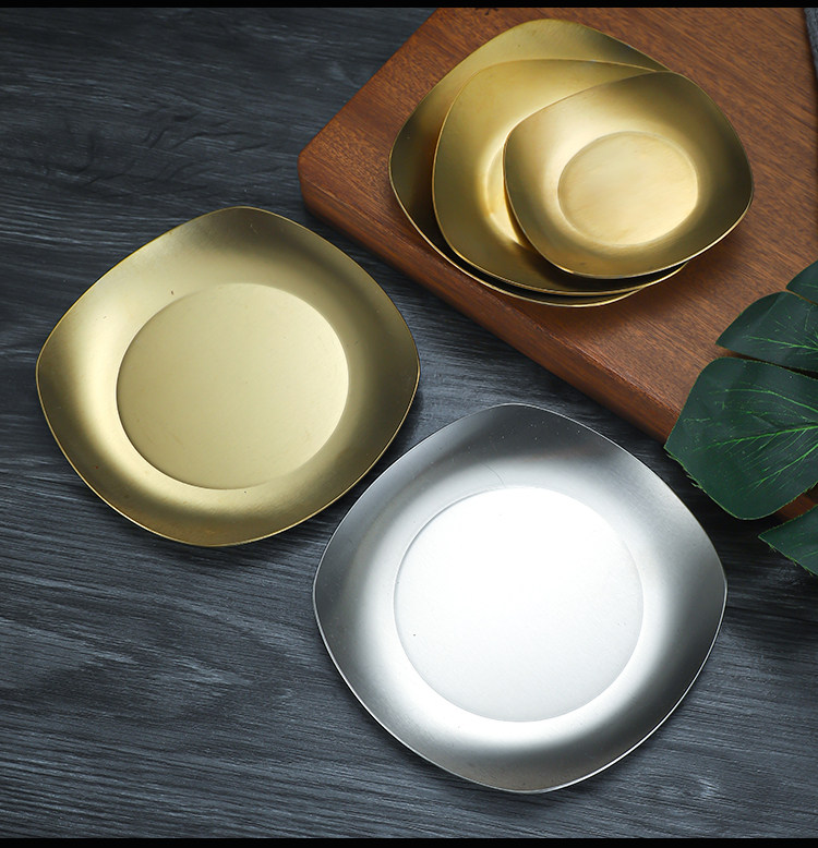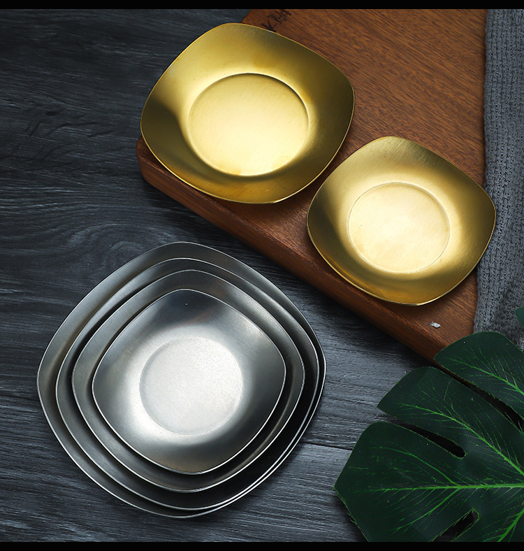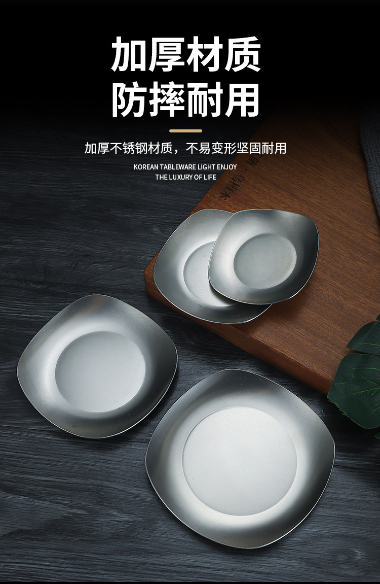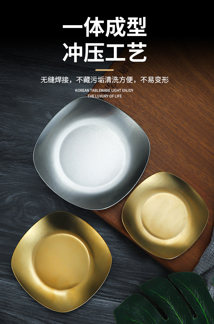 304不锈钢韩式金色餐碟酱料碟骨碟味碟方形烤肉盘商用烤肉店餐具