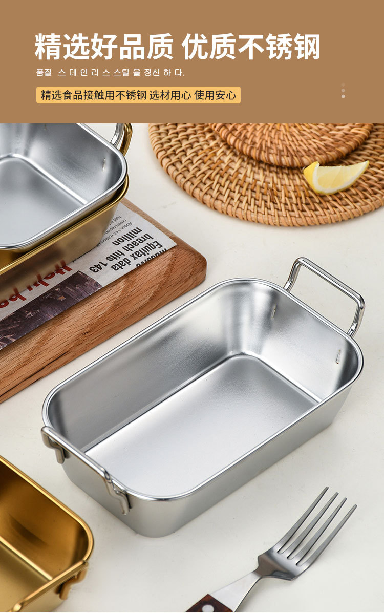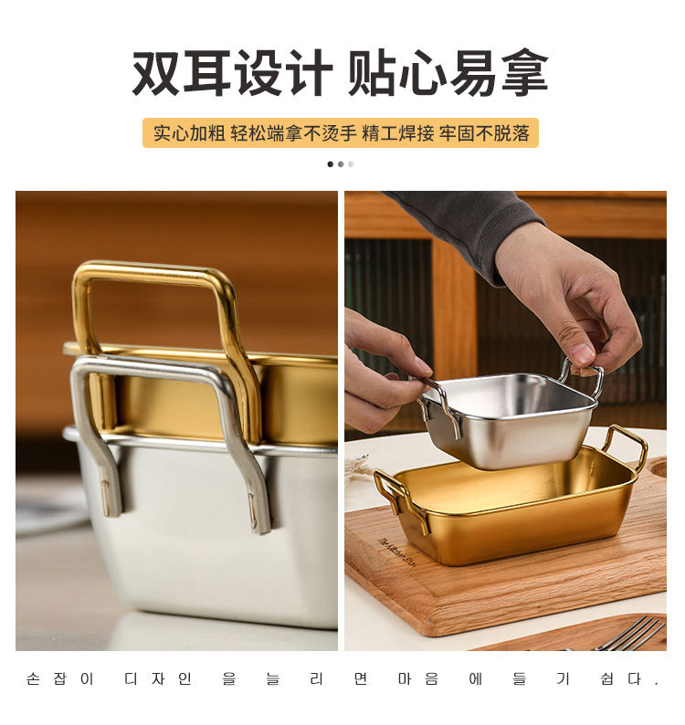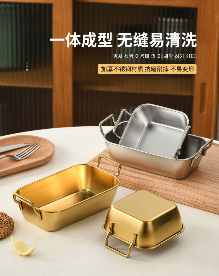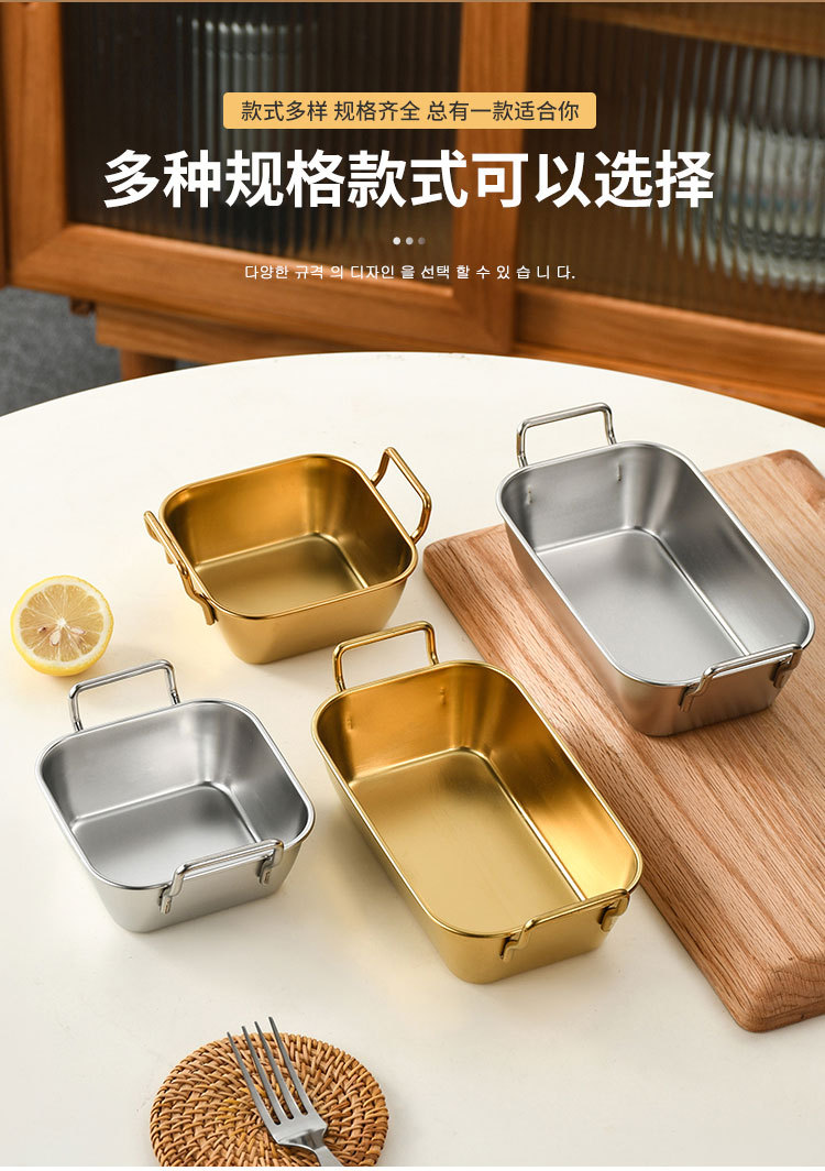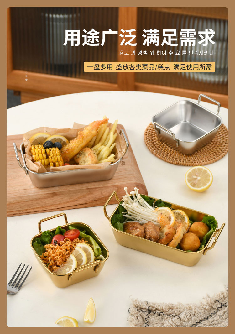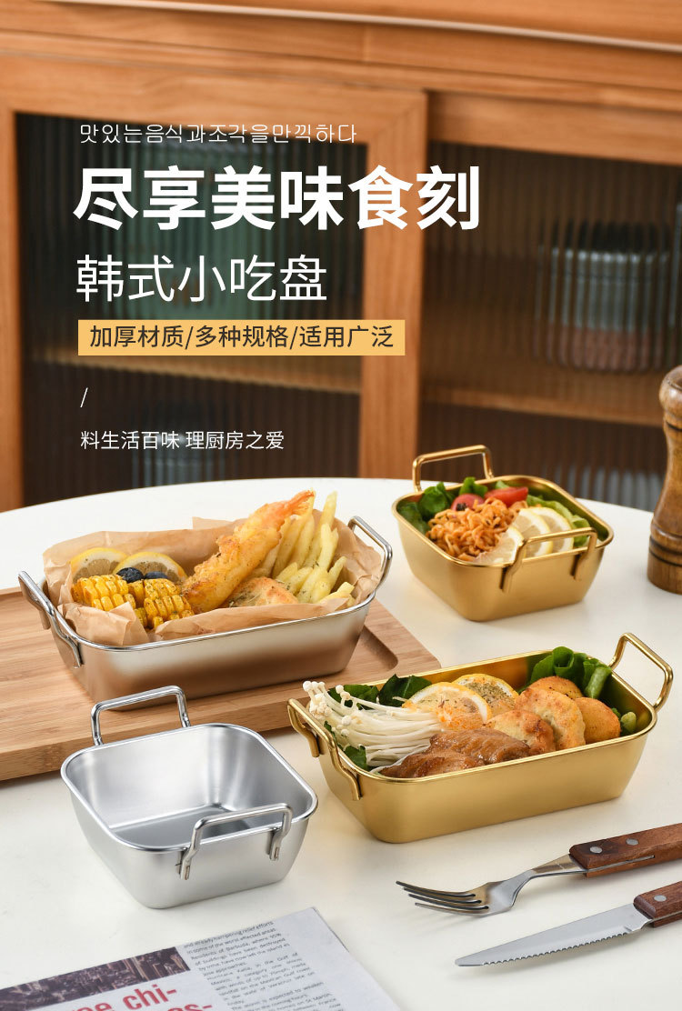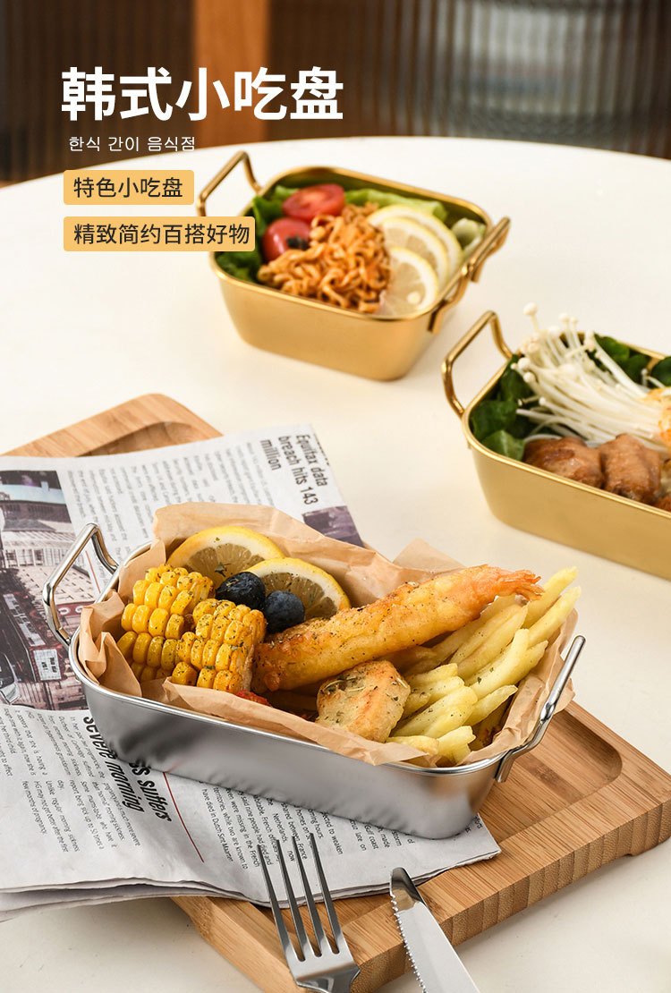 韩式不锈钢方形小食盒薯条小吃盘创意方形小提篮炸鸡点心带耳方盘