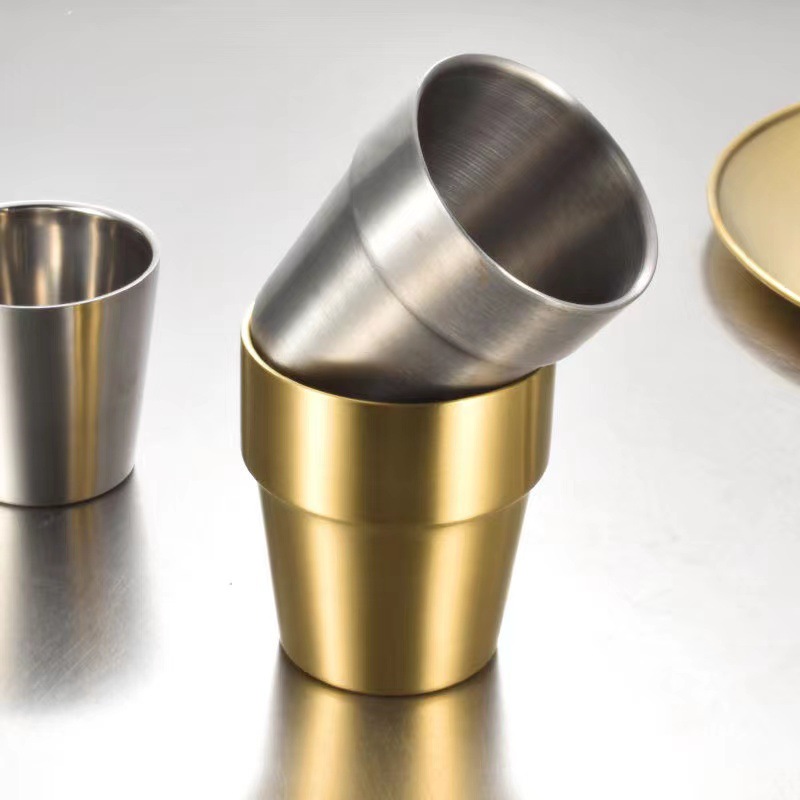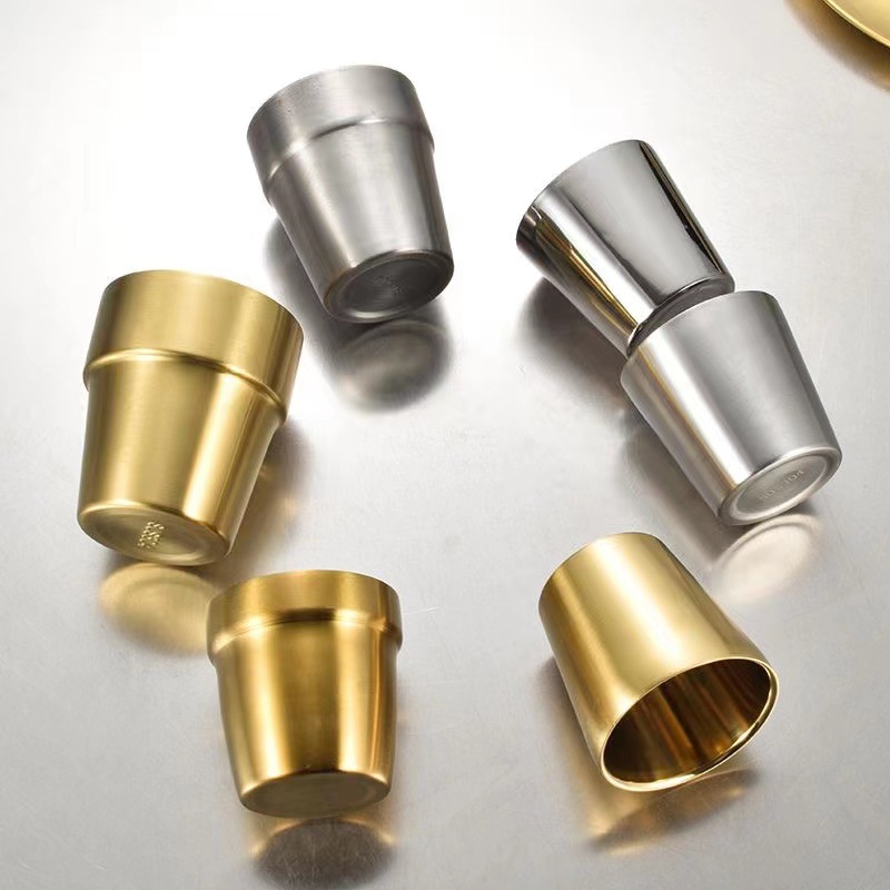 304不锈钢双层水杯幼儿园防烫饮水杯金色啤酒白酒杯韩式餐厅餐具