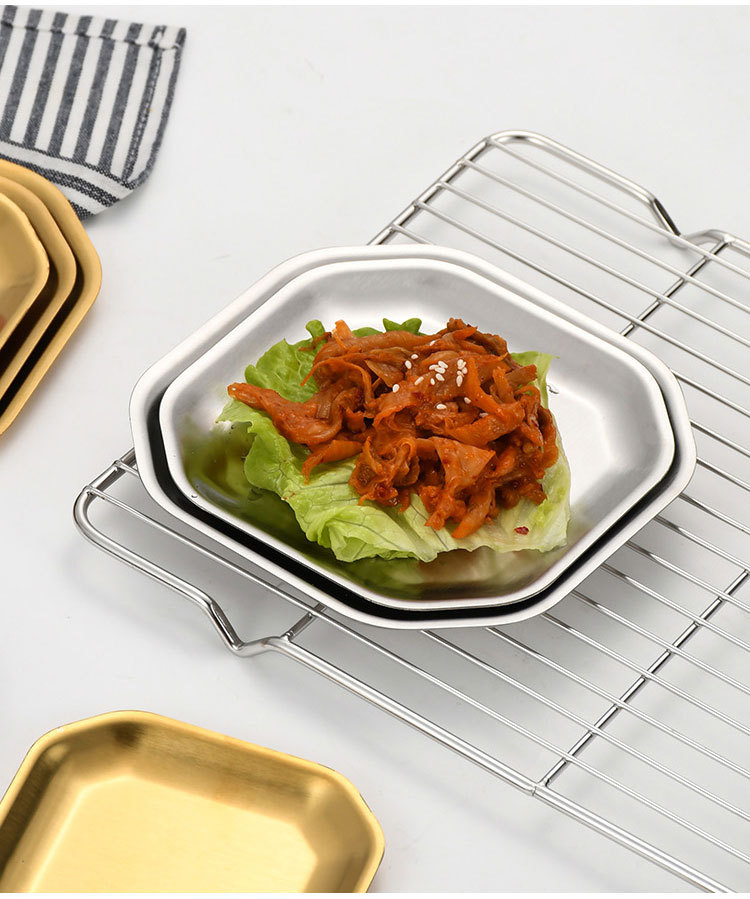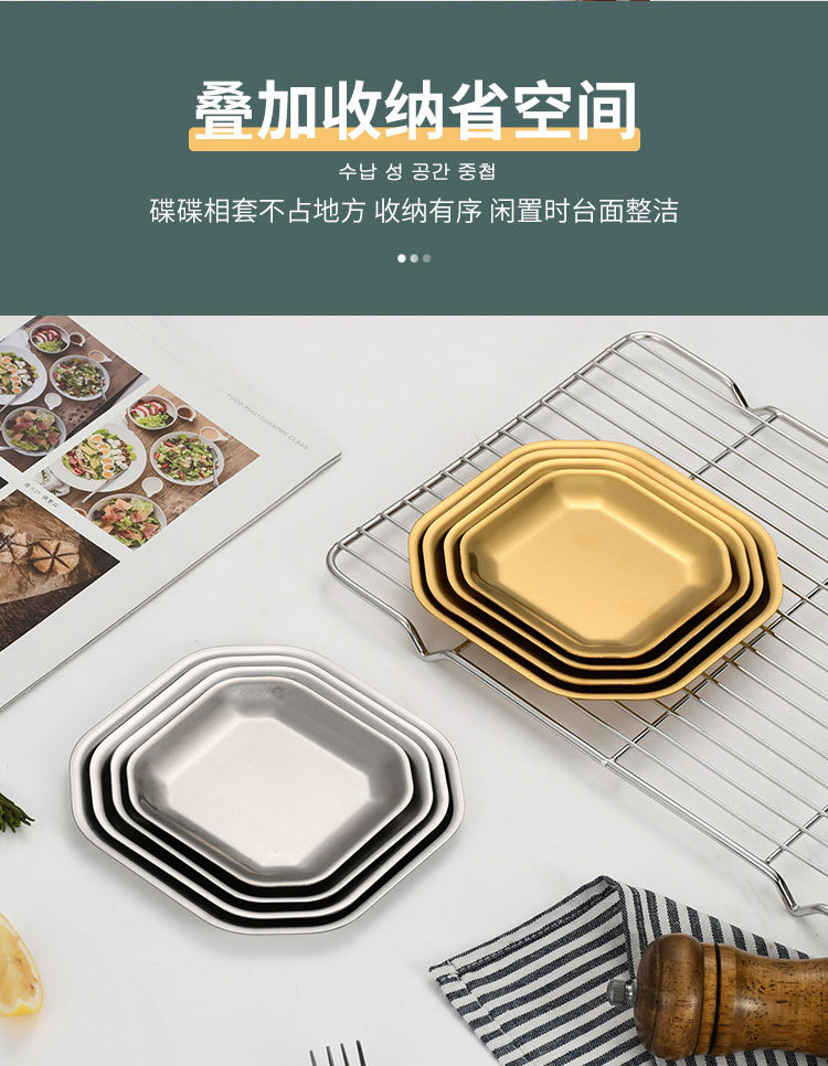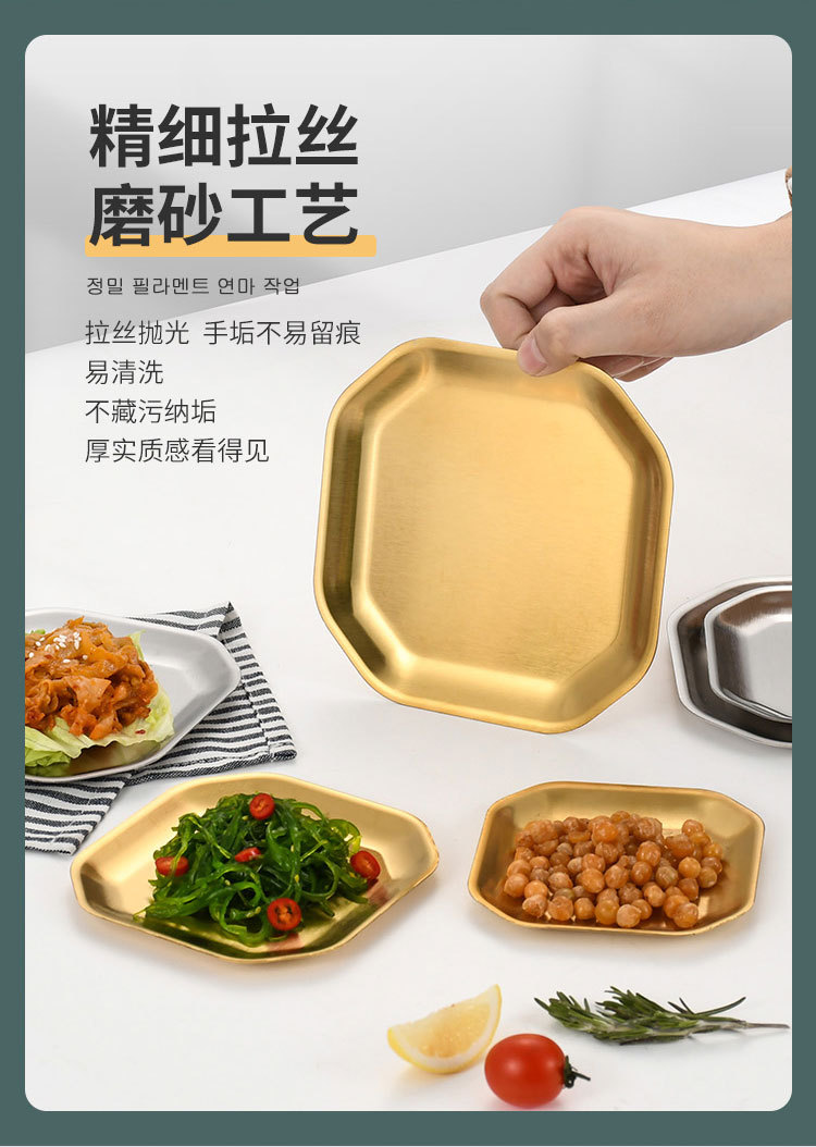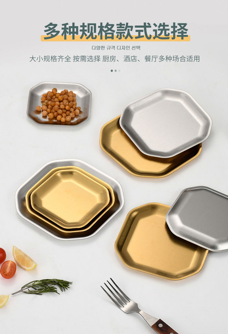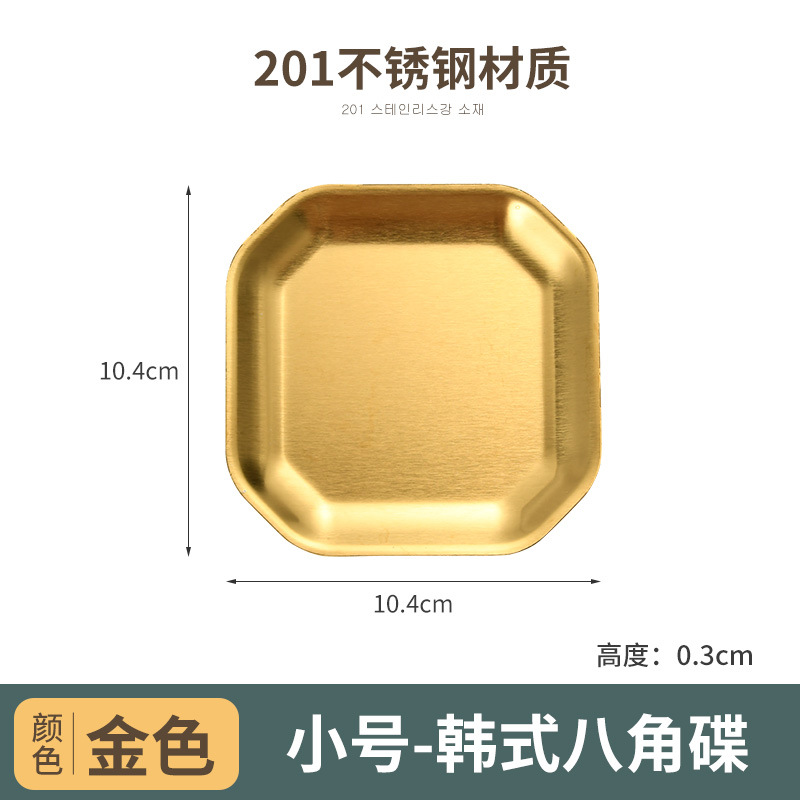 304韩式不锈钢八角碟 备菜方形盘餐具金色烤肉盘泡菜碟创意备菜盘