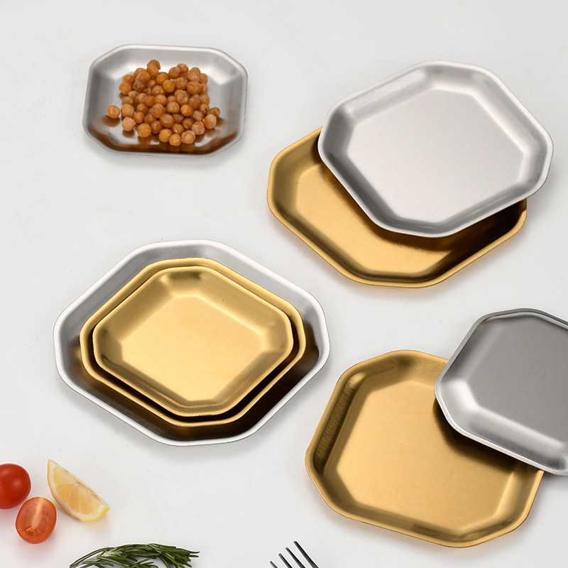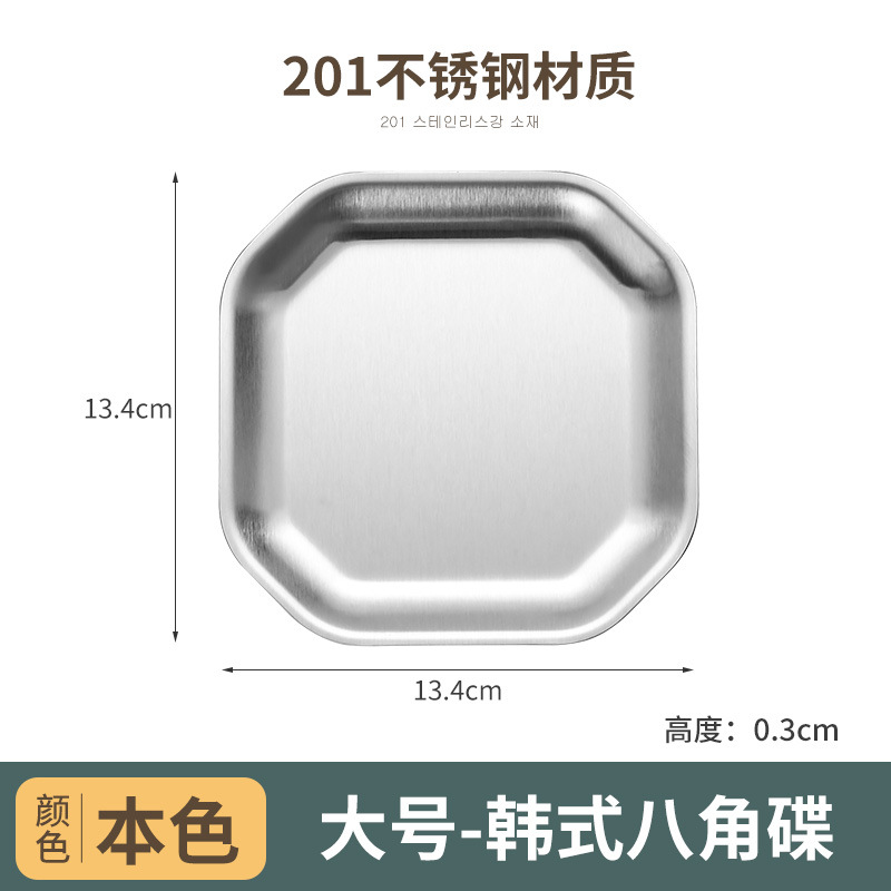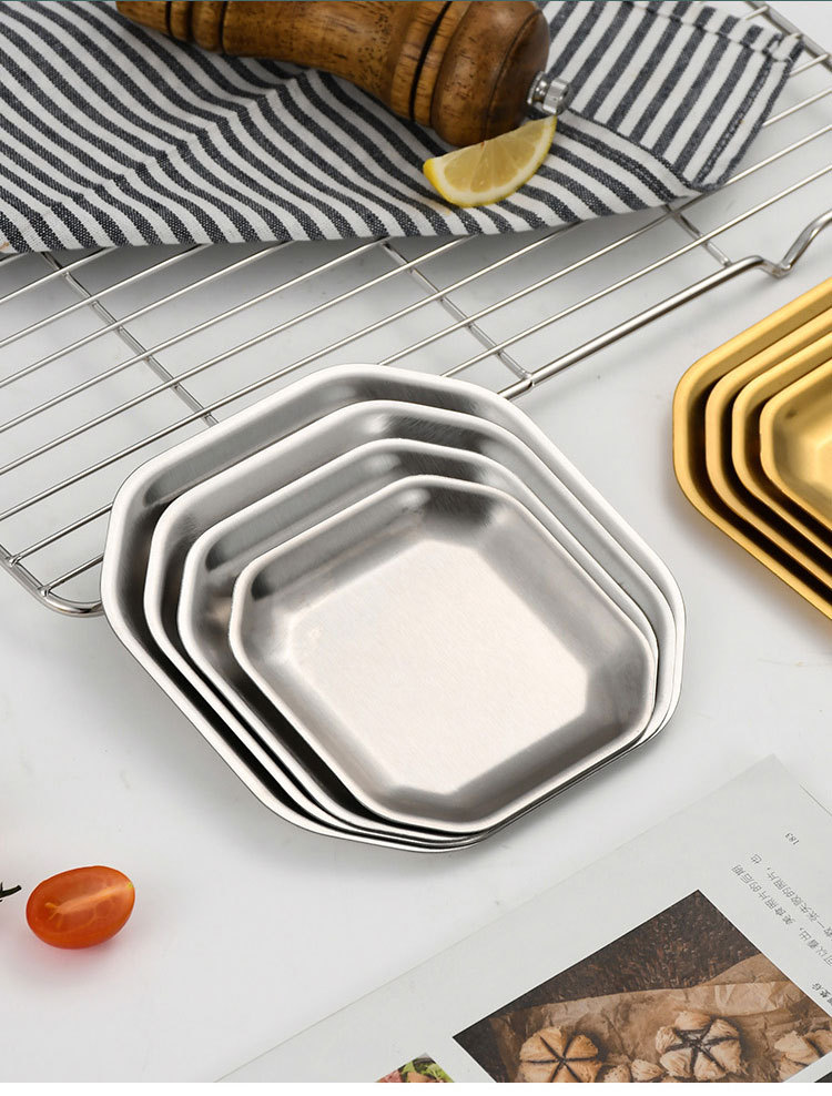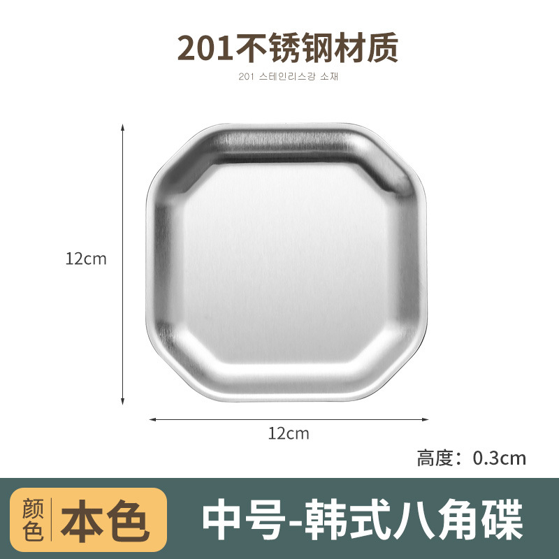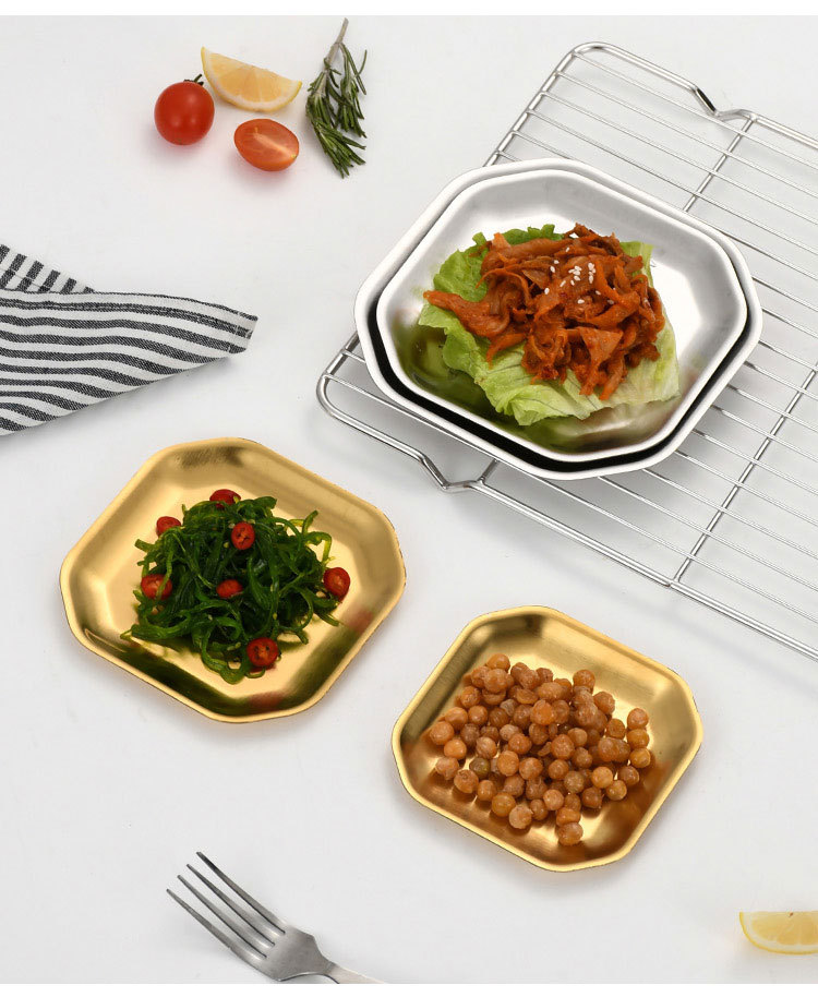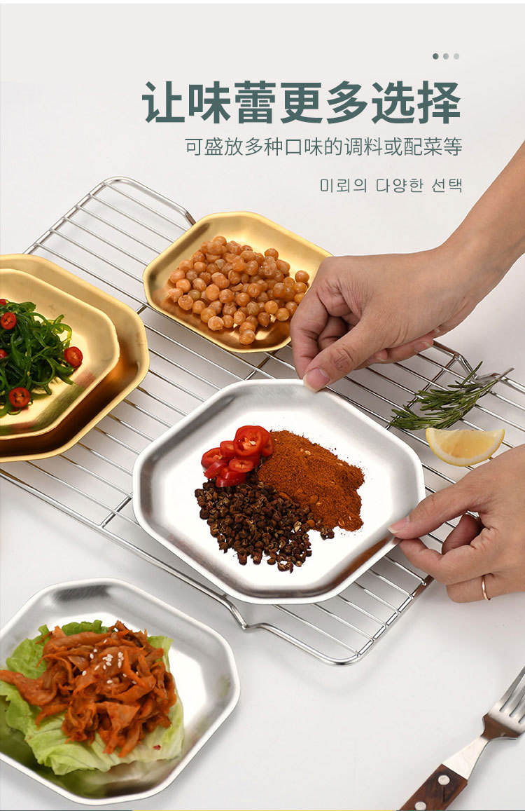 304韩式不锈钢八角碟 备菜方形盘餐具金色烤肉盘泡菜碟创意备菜盘
