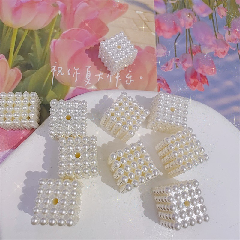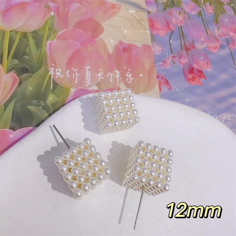 虞倾 新款珍珠方形几何耳环配件 diy树脂杨梅球手机壳项链材料