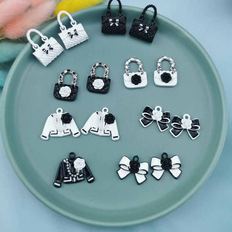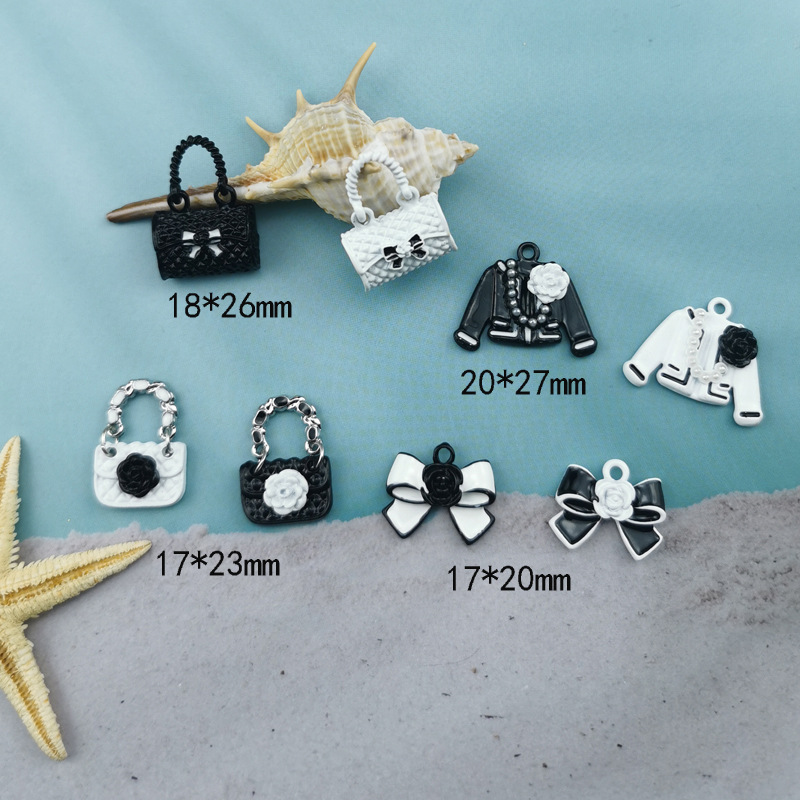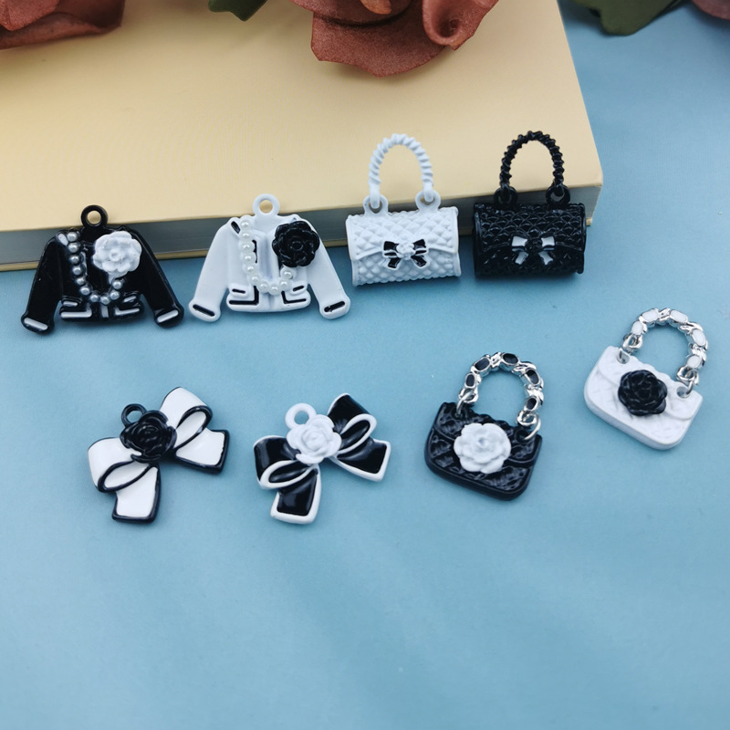 小香风系列立体手提包蝴蝶结衣服 耳环项链diy喷漆合金饰品配件