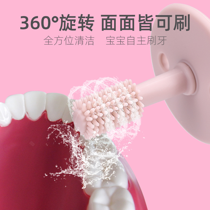 婴儿牙刷婴幼儿乳牙新生儿小月份儿童硅胶软毛旋转清洁器洗苔藓刷