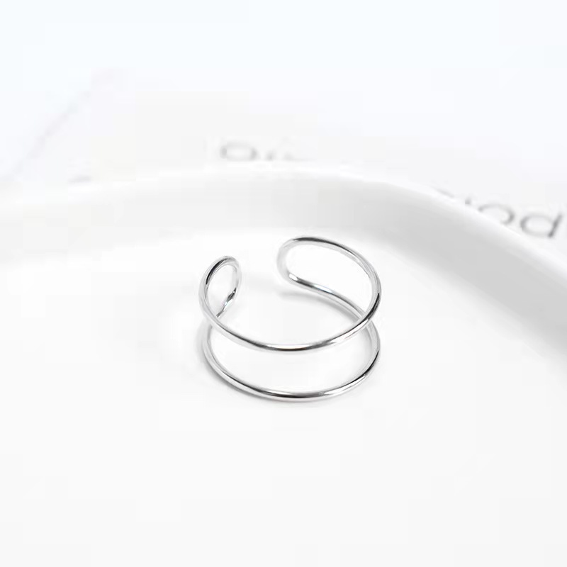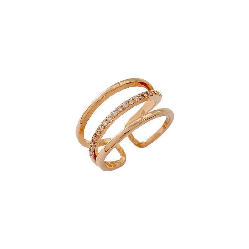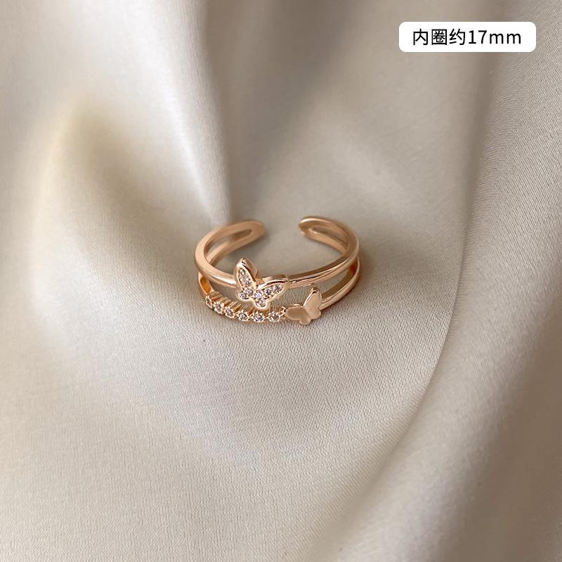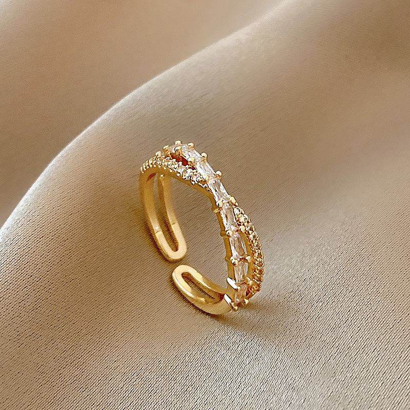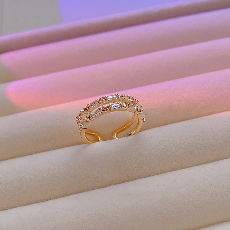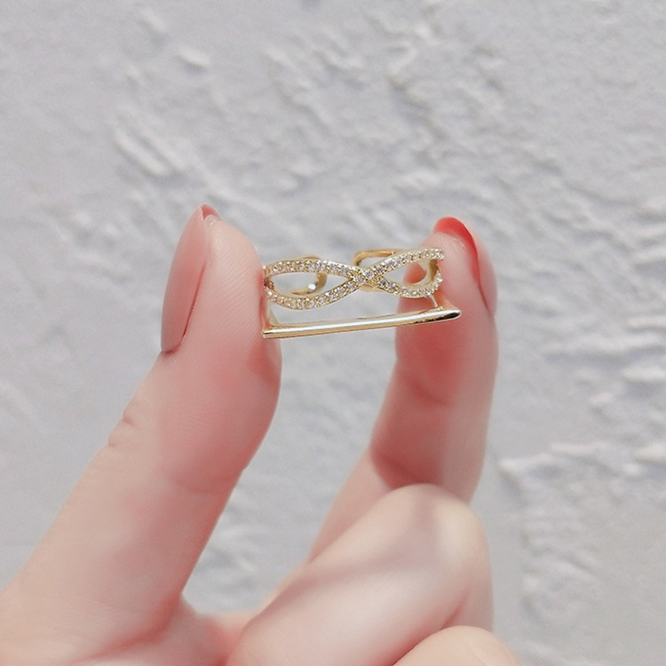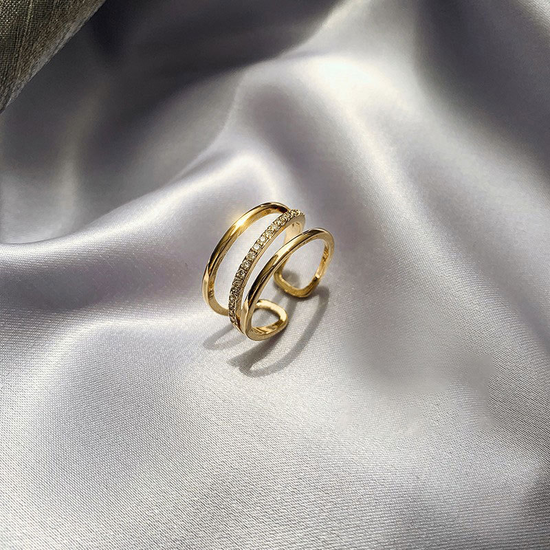 日韩版新款简约小众设计个性双层镂空镶钻开口可调节戒指女指环