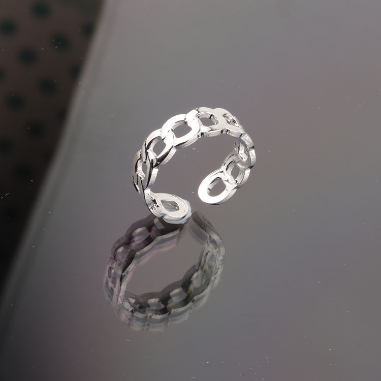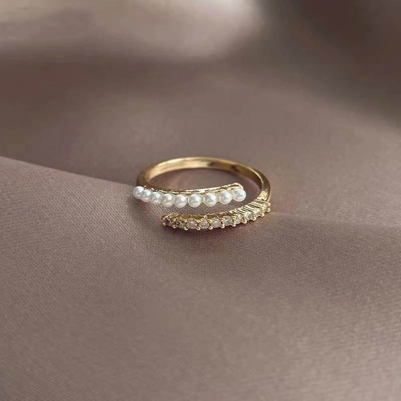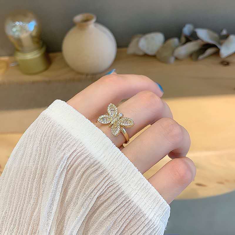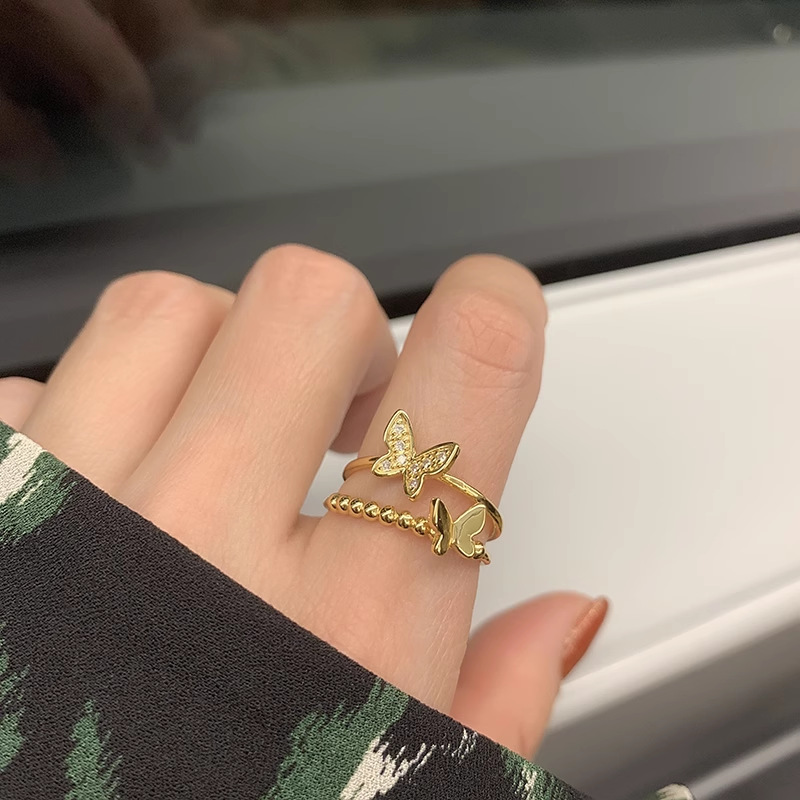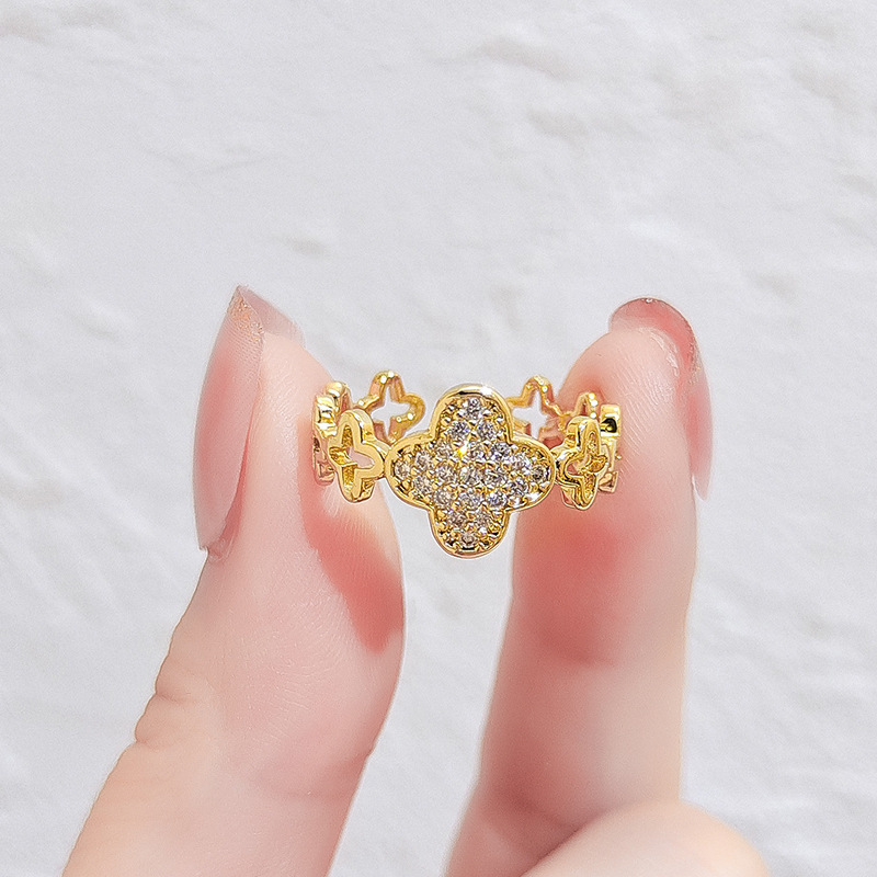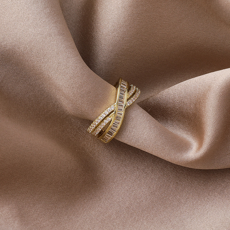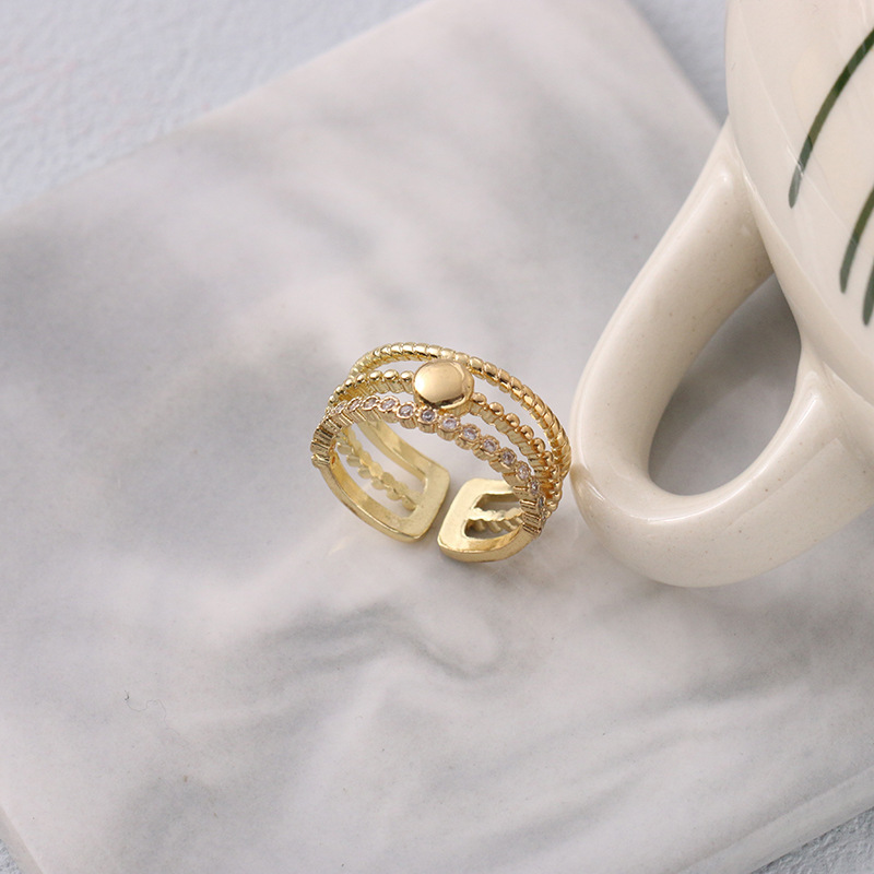 日韩版新款简约小众设计个性双层镂空镶钻开口可调节戒指女指环