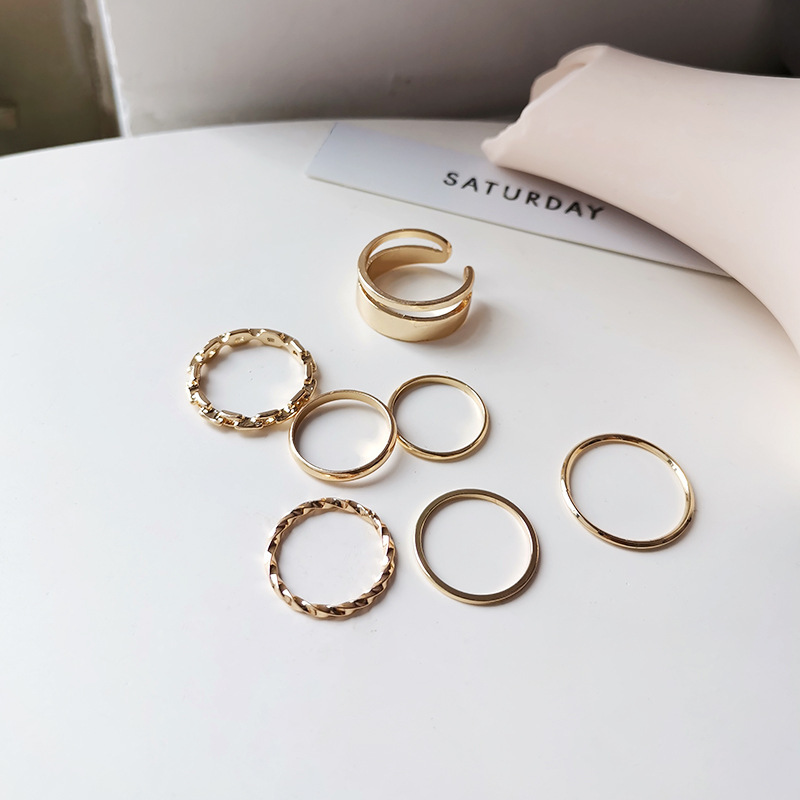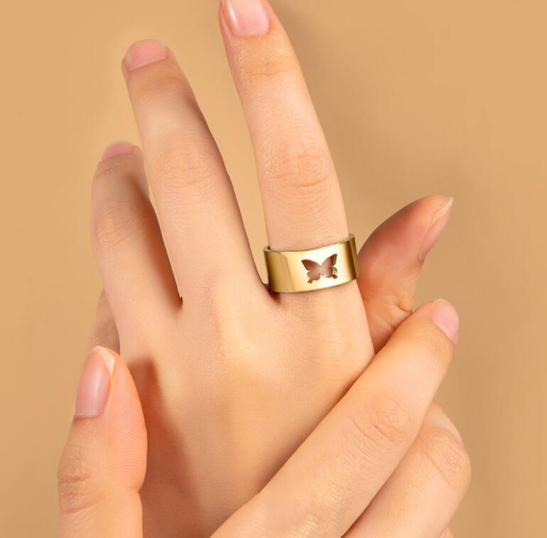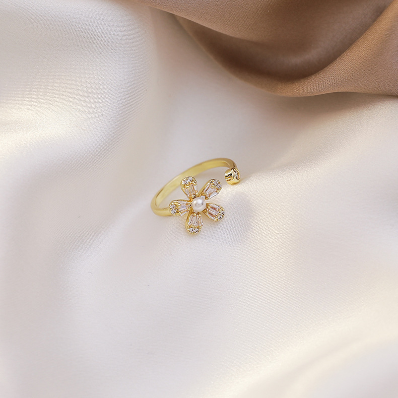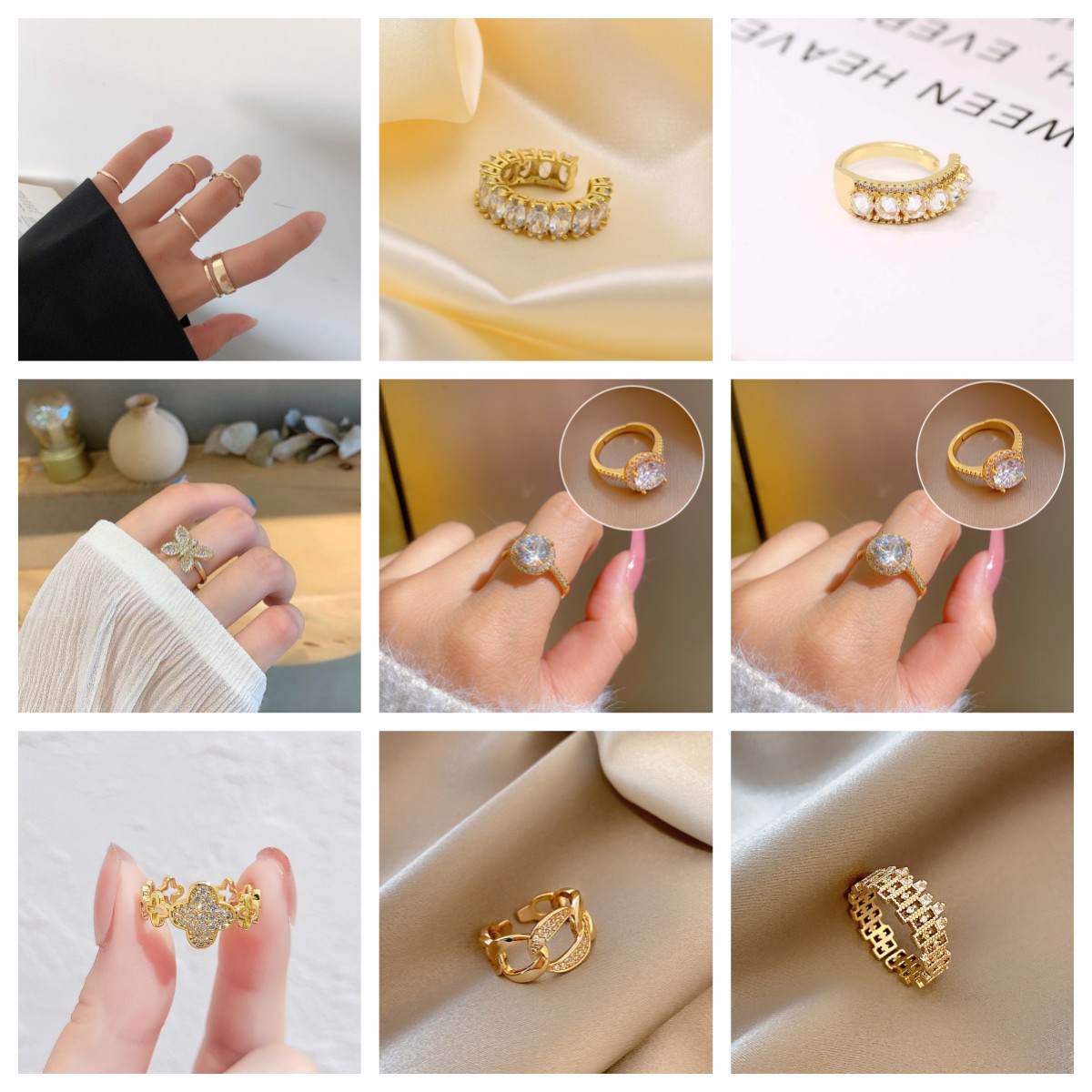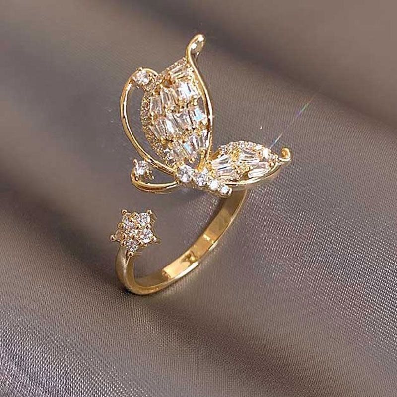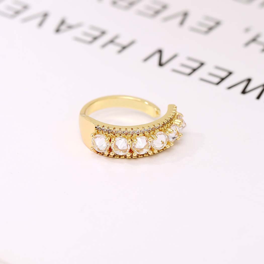 日韩版新款简约小众设计个性双层镂空镶钻开口可调节戒指女指环