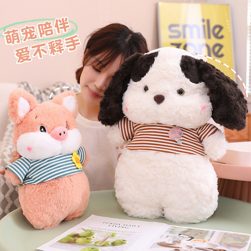 可爱萌宠猪猪抱枕卡通穿衣服狗狗毛绒玩具爪机娃娃婚庆抛洒礼品女