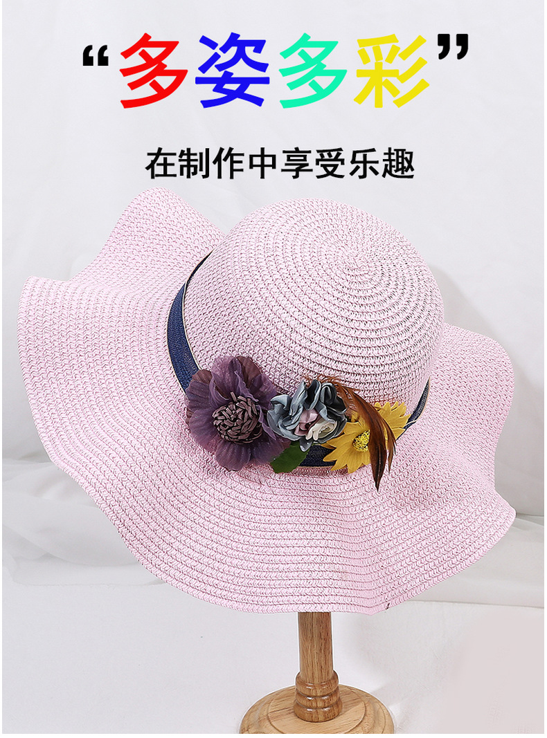 草帽女夏季防晒沙滩大沿帽新款出游遮阳波浪帽手工DIY太阳帽工厂