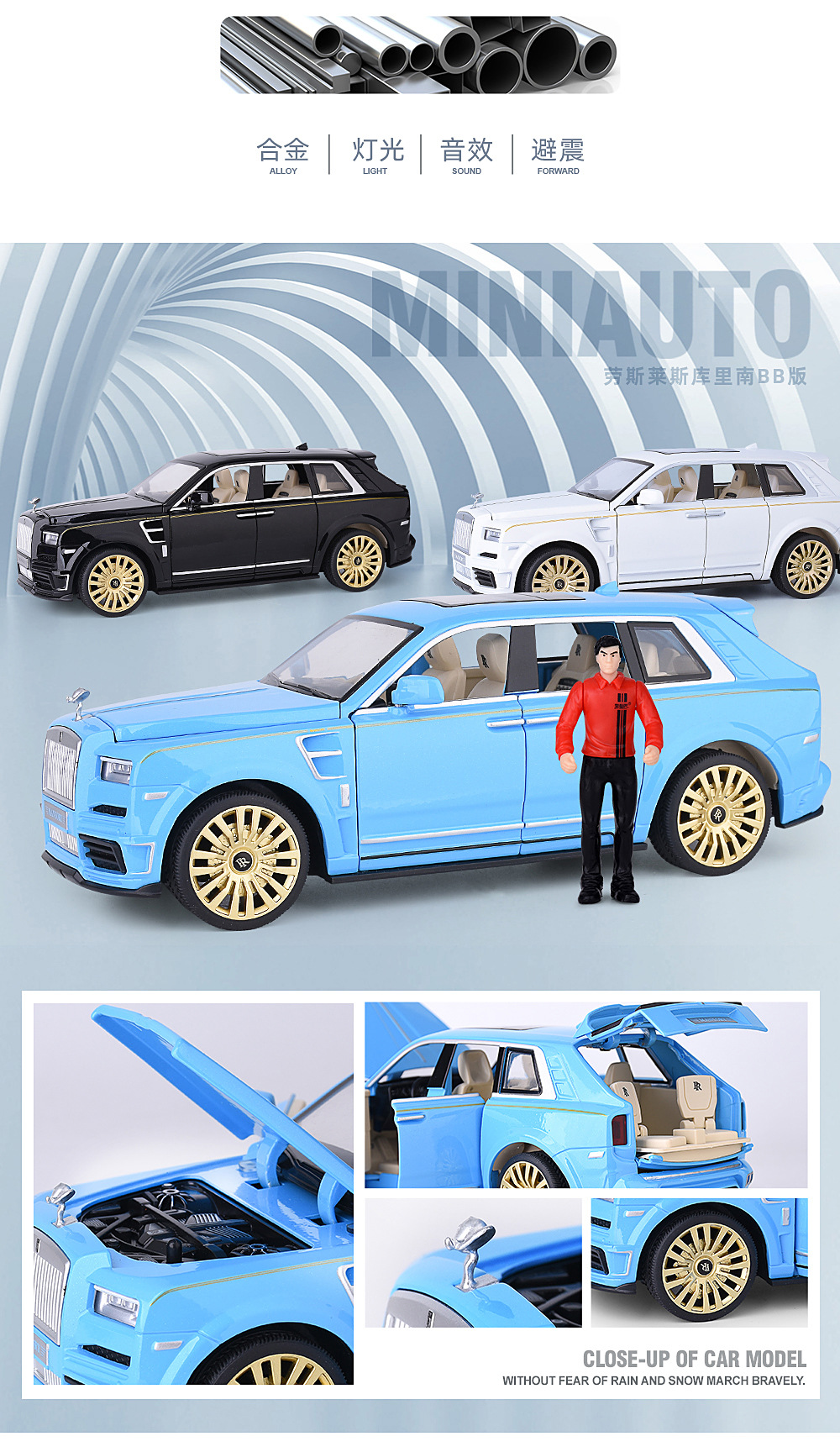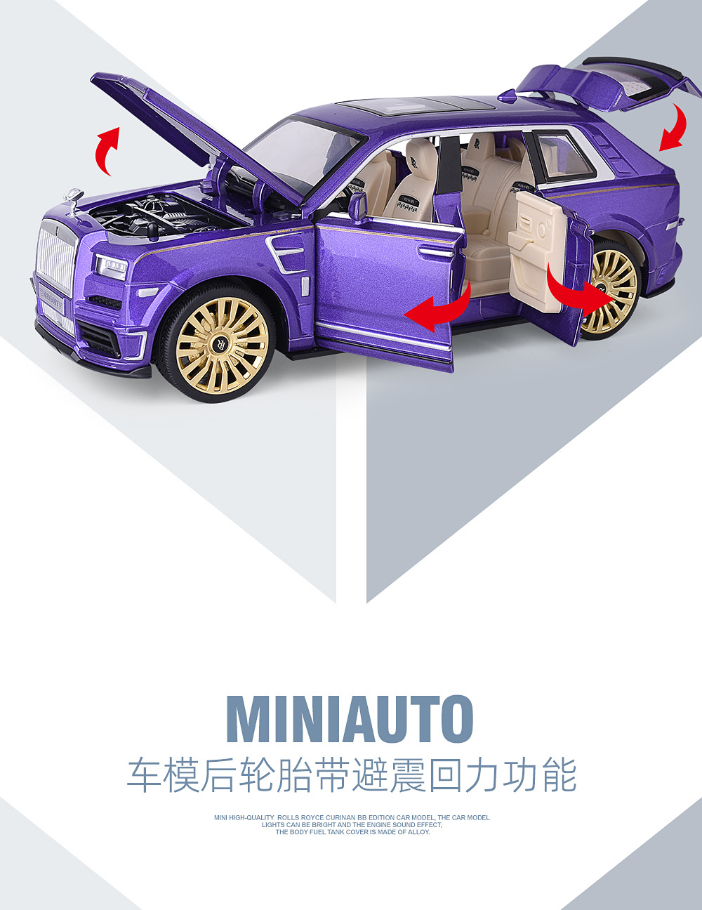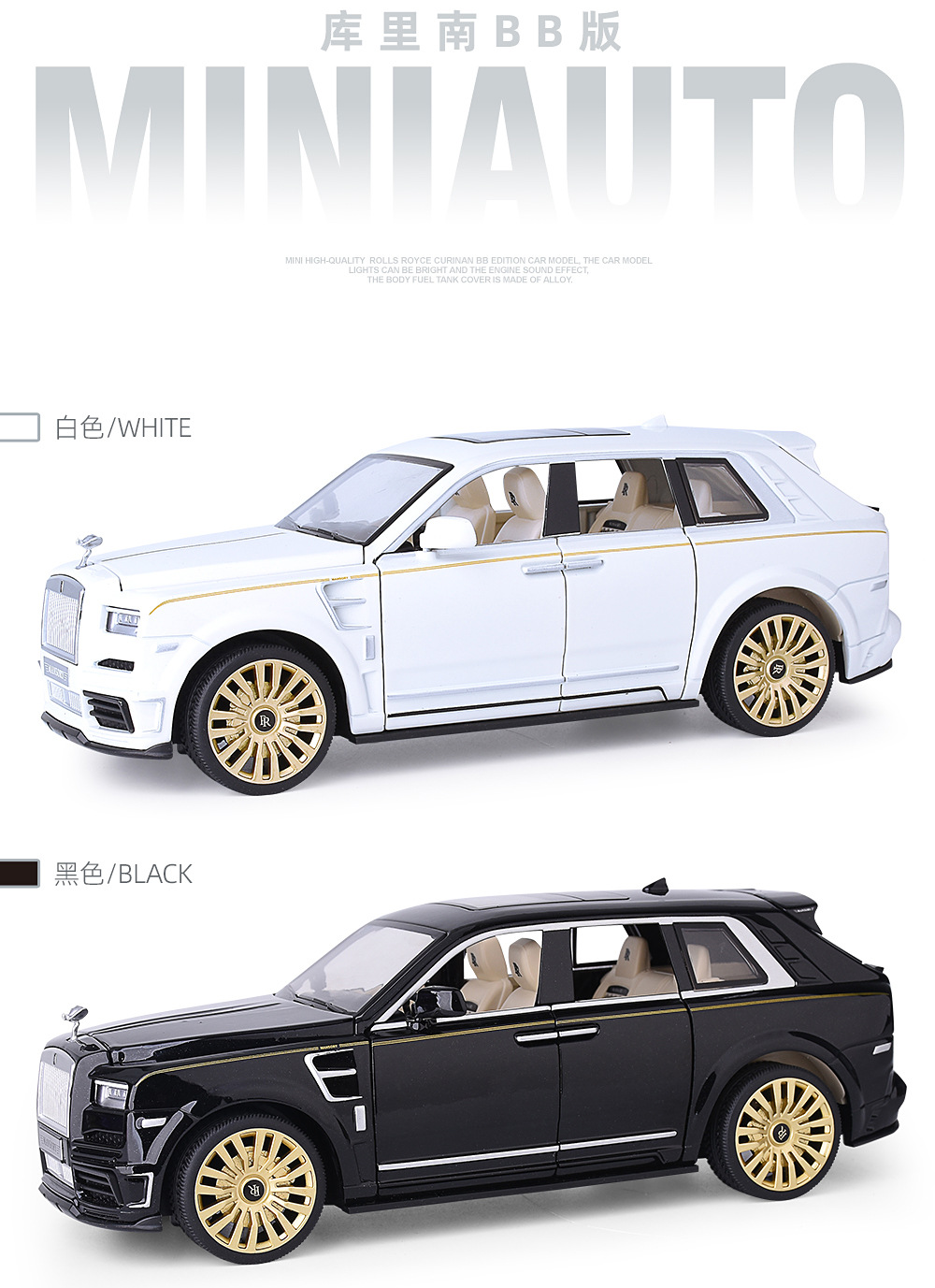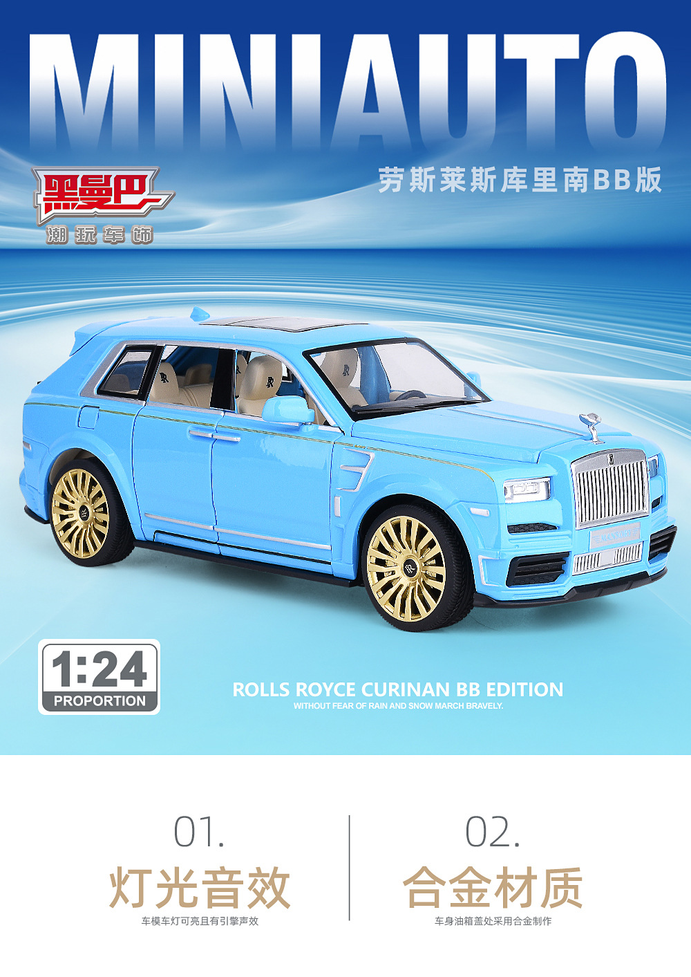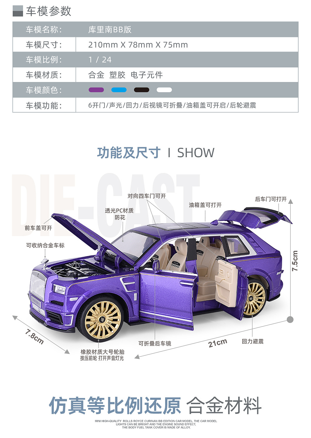 1:24合金玩具仿真汽车劳斯库里南减震玩具车多开门声光回力礼品