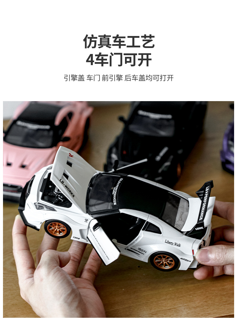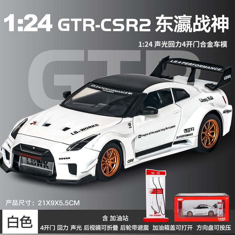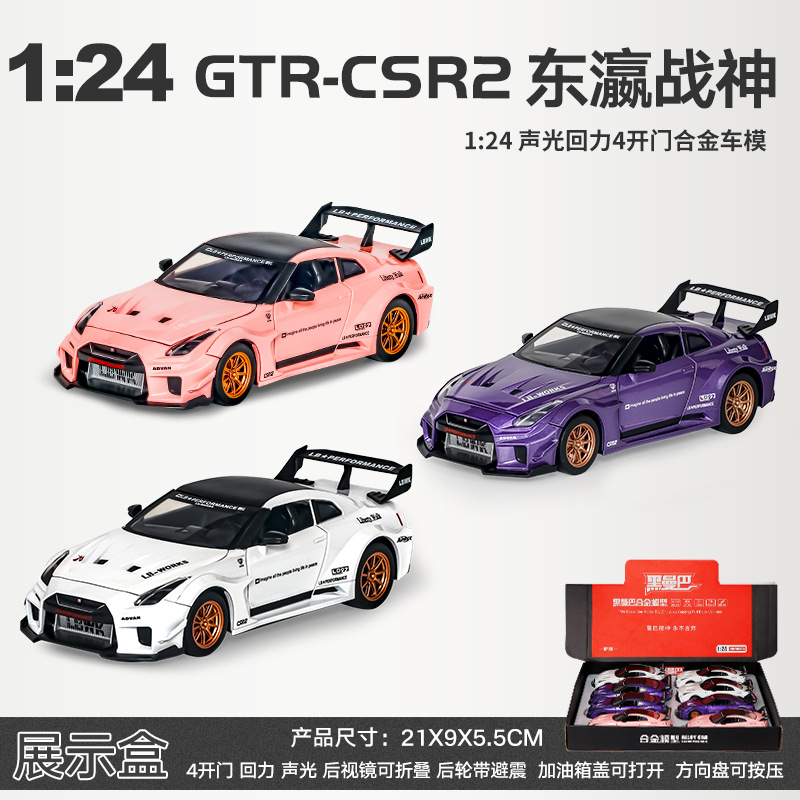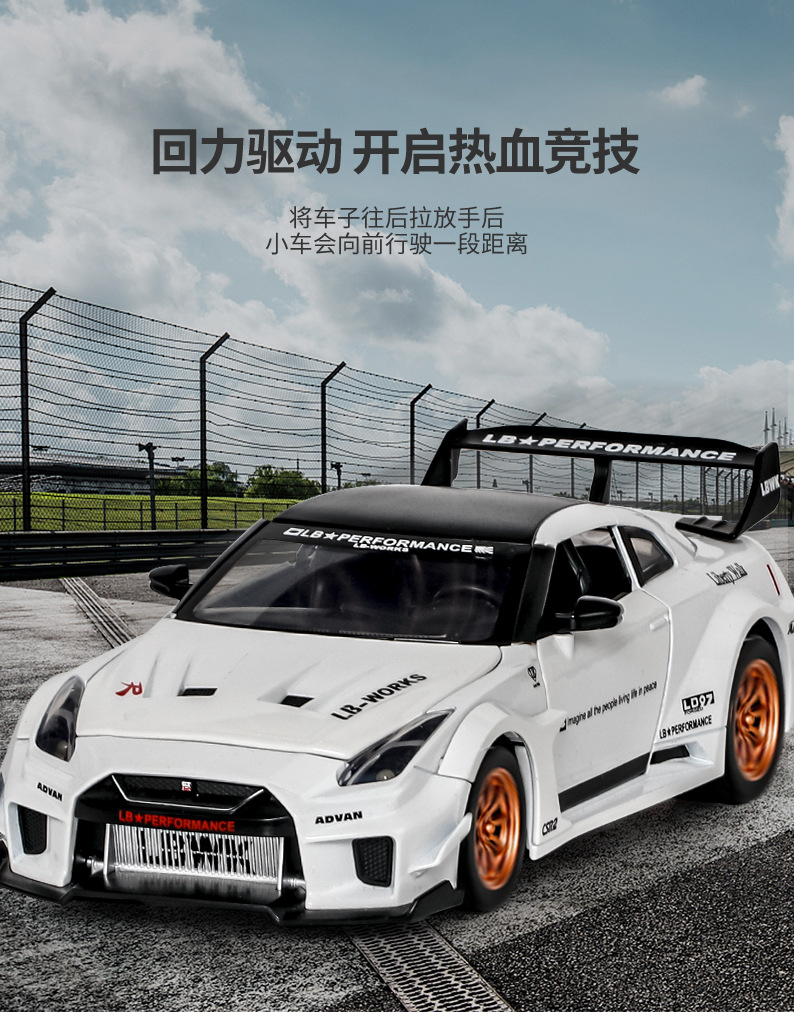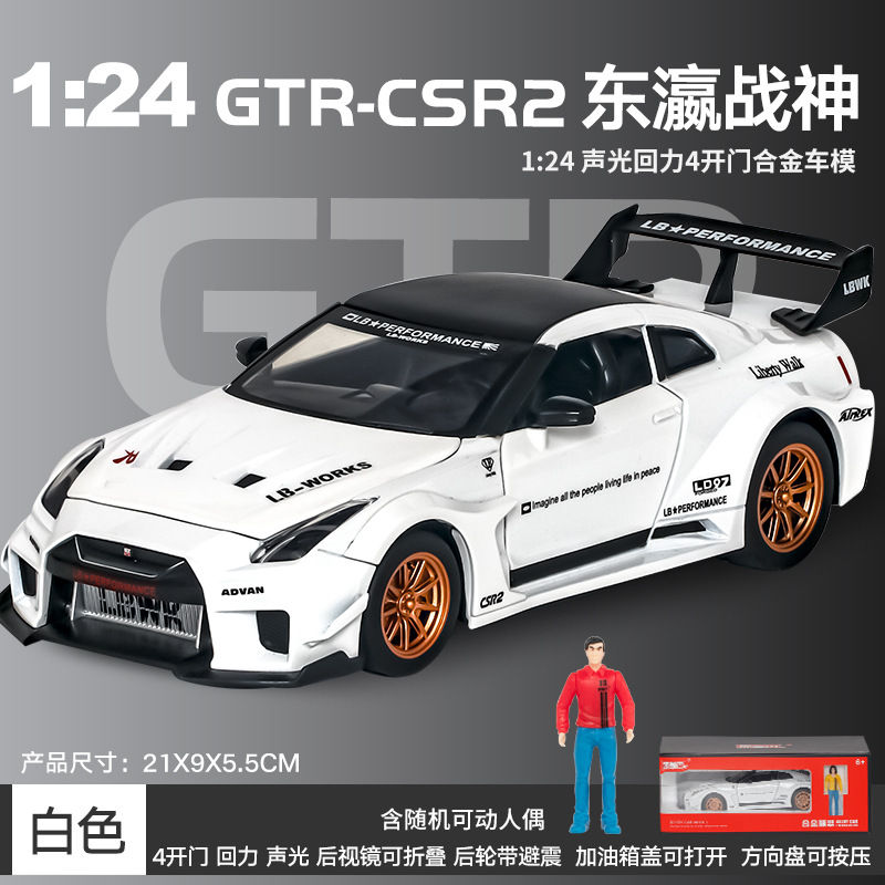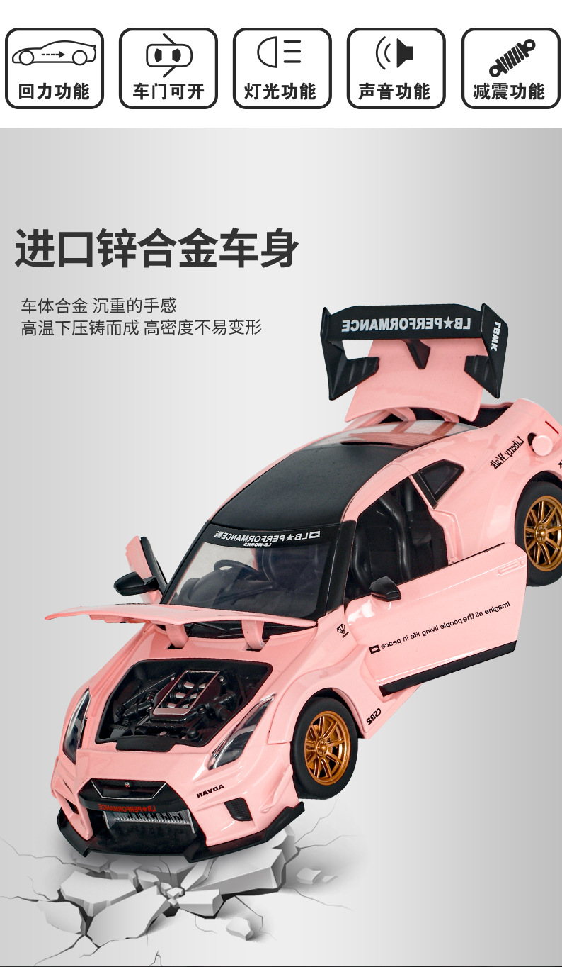 合金玩具模型1:24日产GTR回力声光后轮避震仿真跑车汽车模型男孩