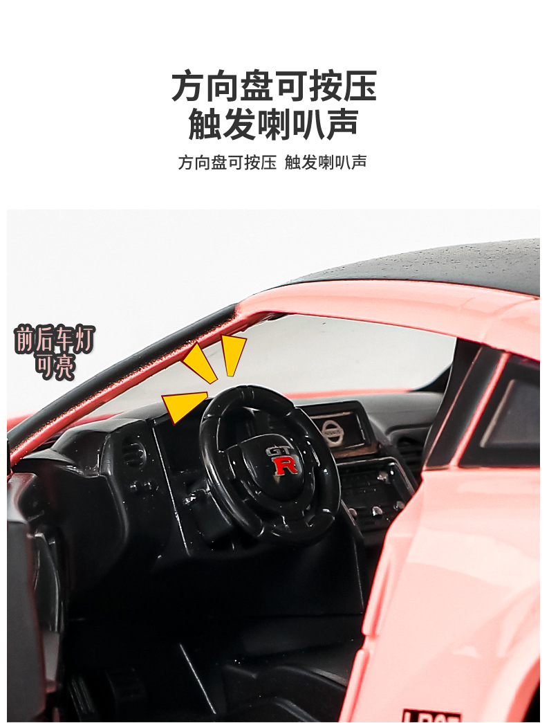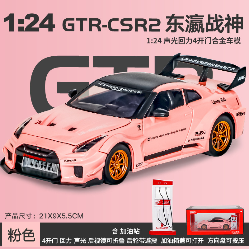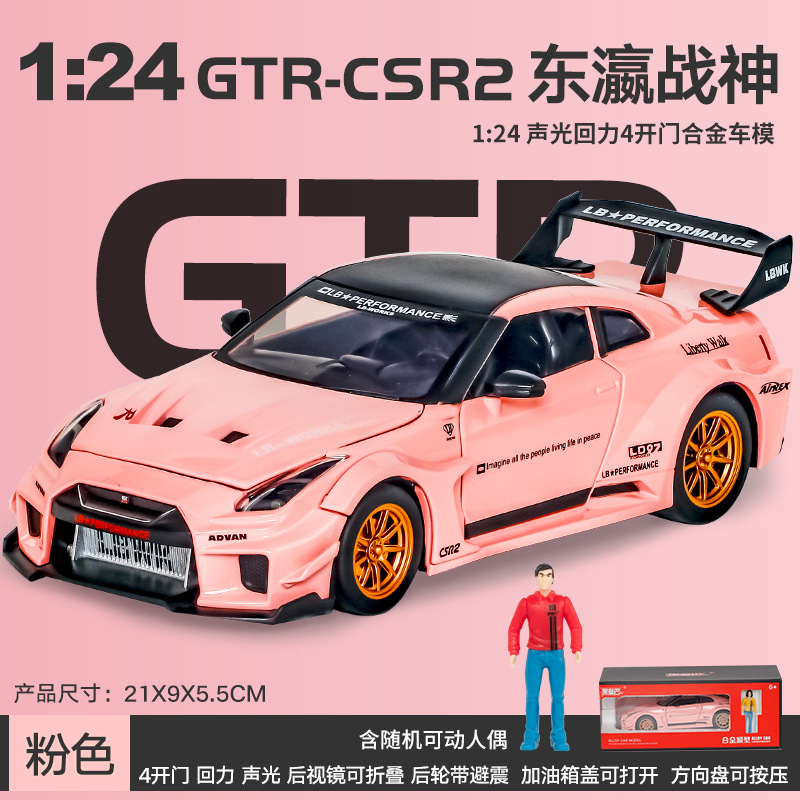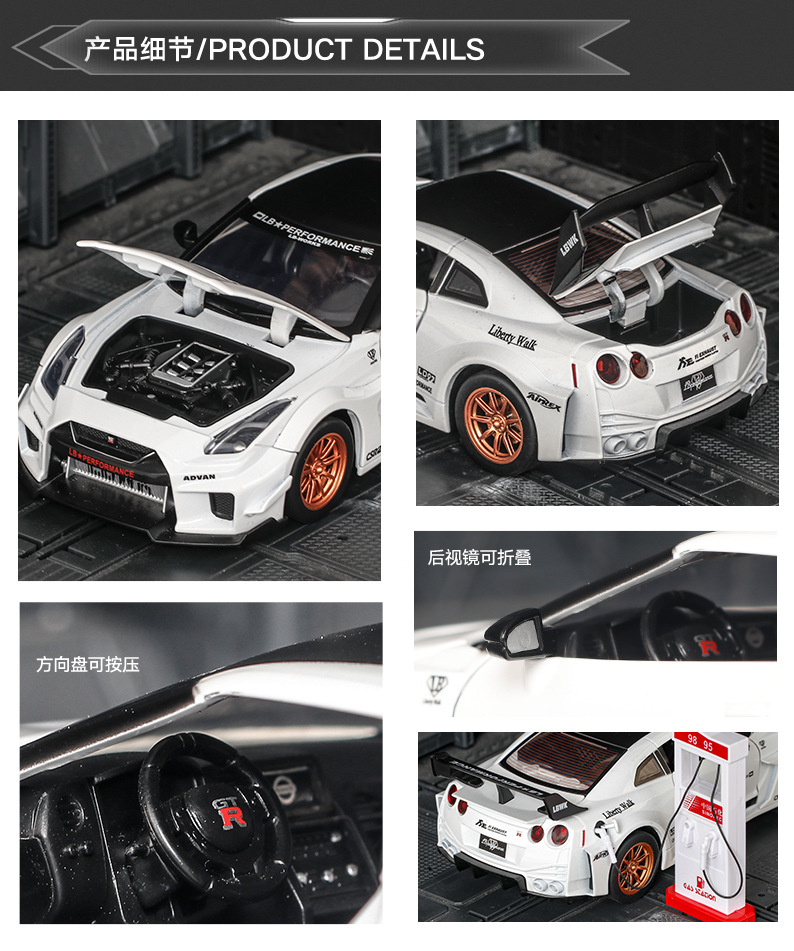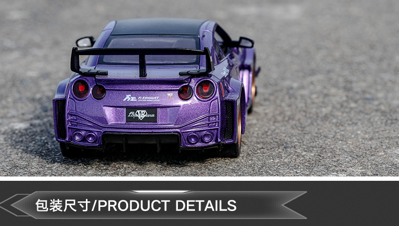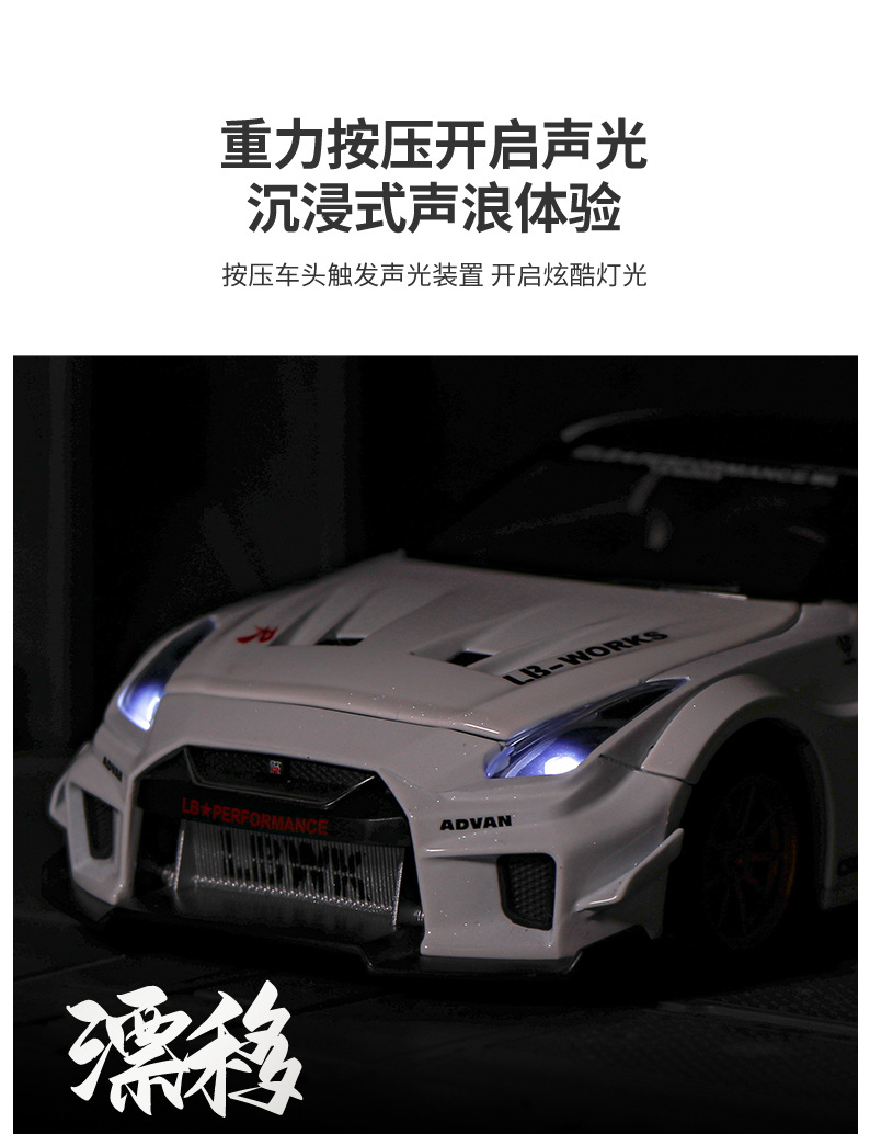 合金玩具模型1:24日产GTR回力声光后轮避震仿真跑车汽车模型男孩