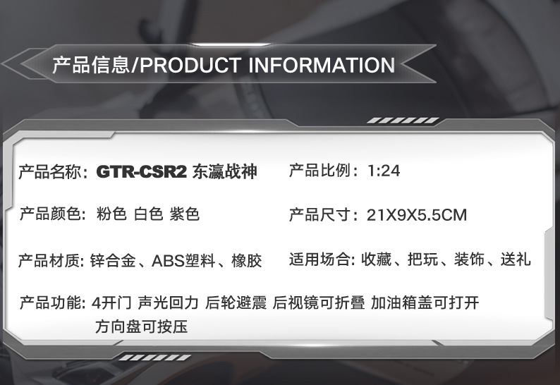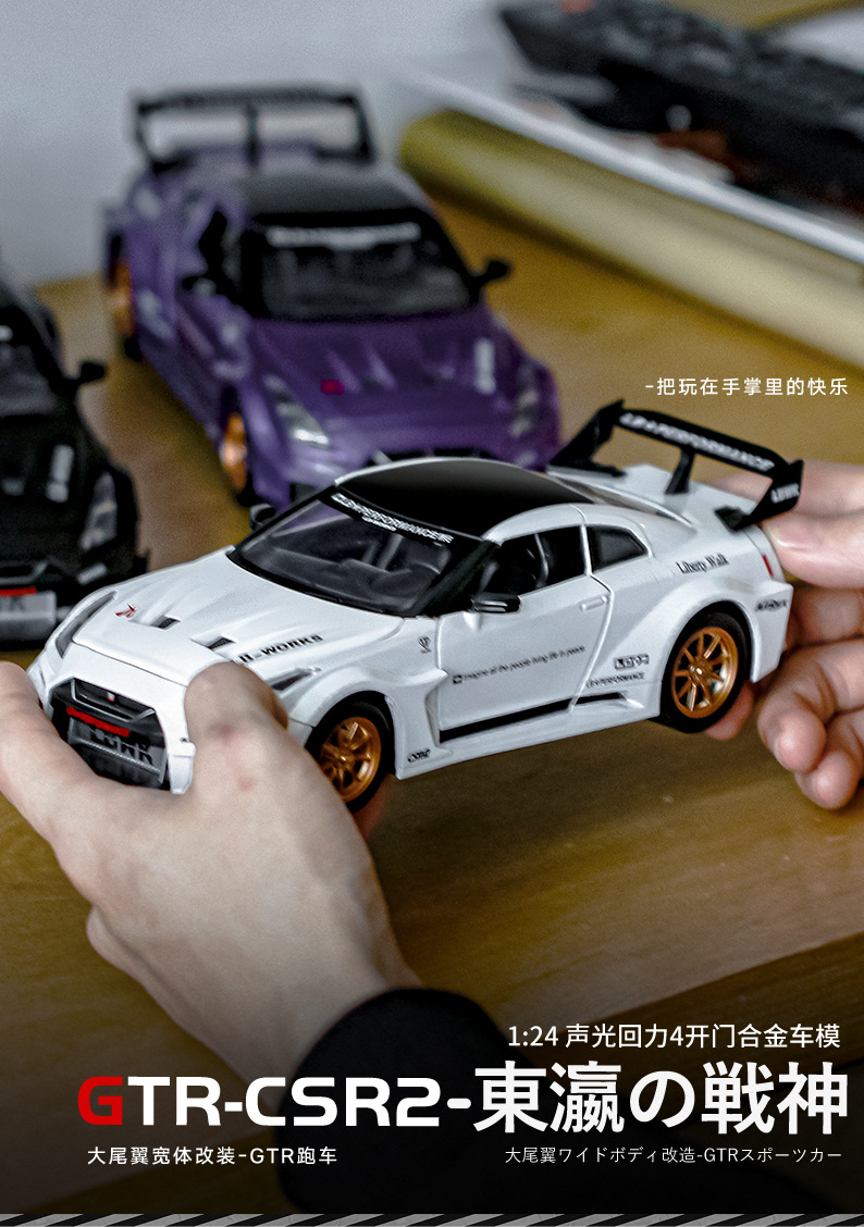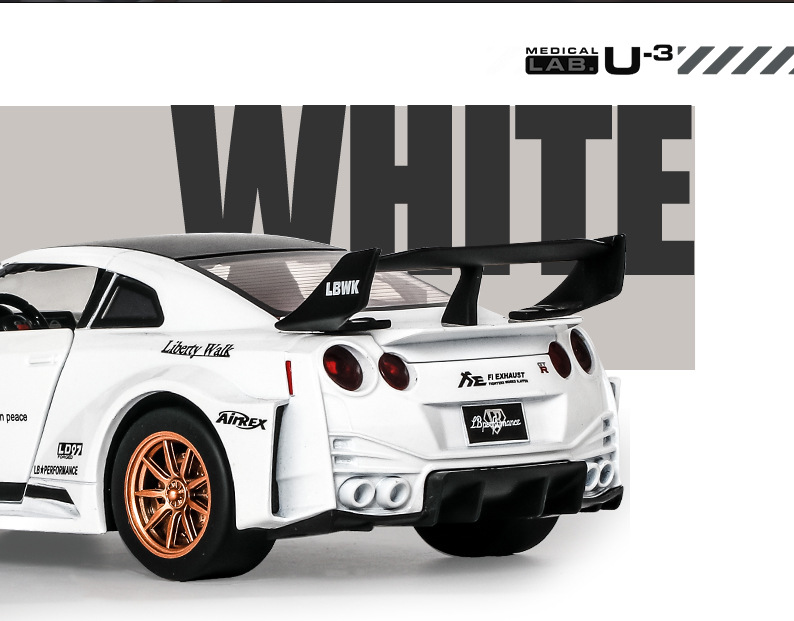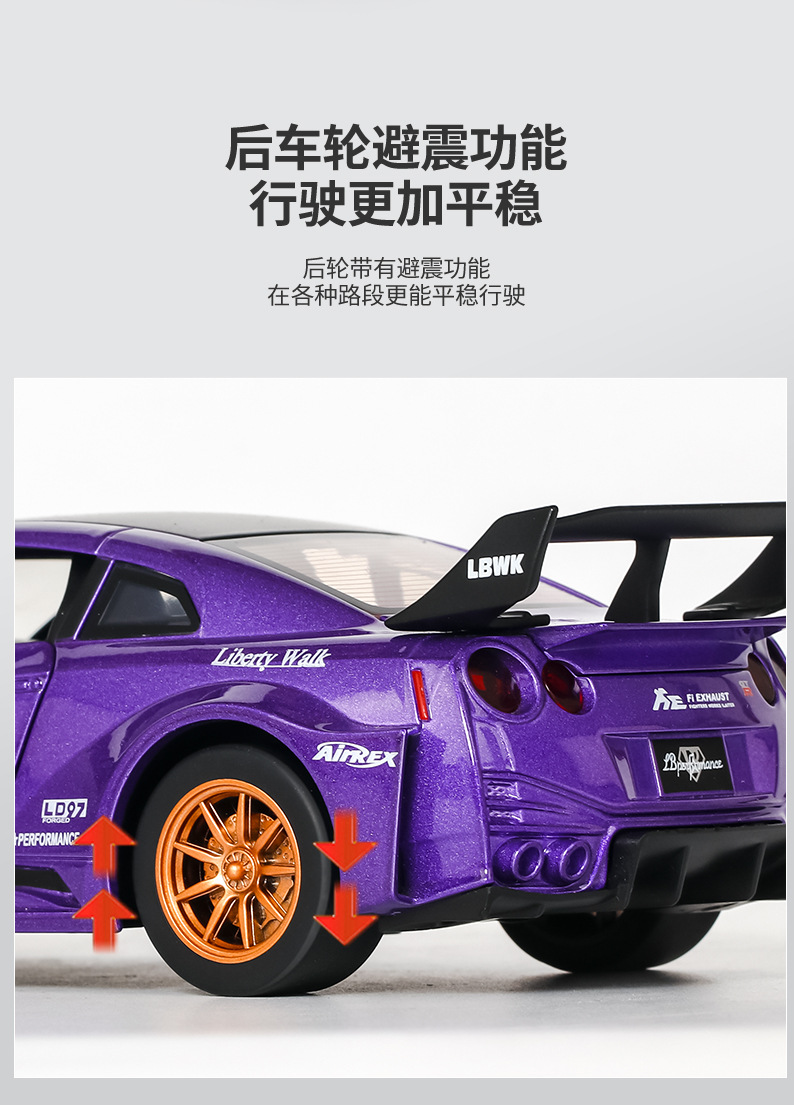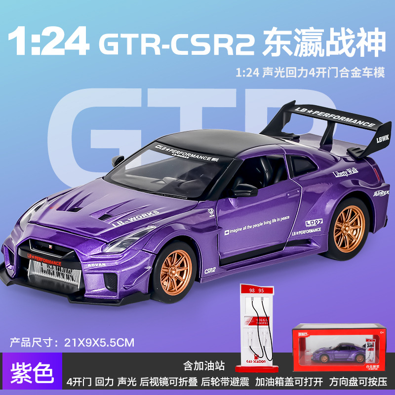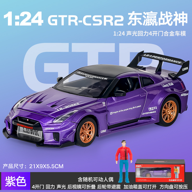 合金玩具模型1:24日产GTR回力声光后轮避震仿真跑车汽车模型男孩
