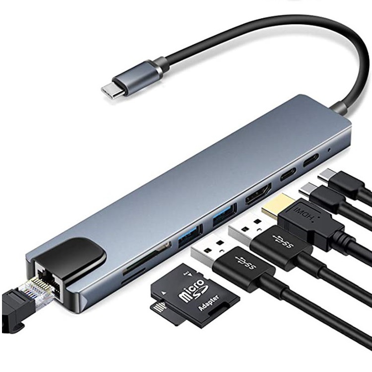 跨境Type-c转HDMI RJ45 PD八合一拓展坞usb type-c集线器分线器