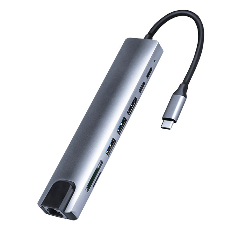 产品名称:Type-C to PD+USB3.0*2+SD+TF+HDMI+RJ45+type-c 扩展坞 (8 in 1)
