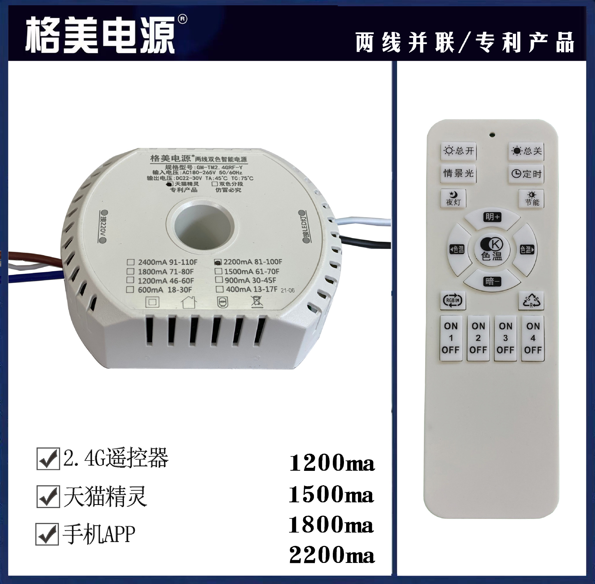 两线双色并联驱动 北欧灯调光电源 24V低压驱动 手机APP