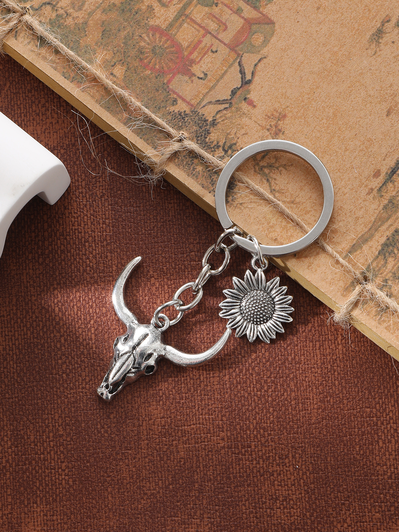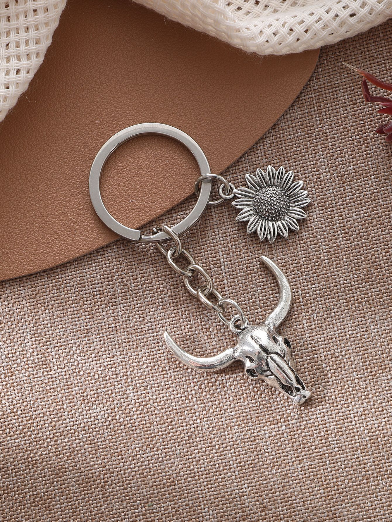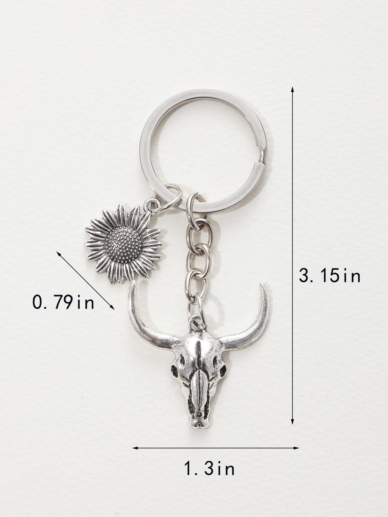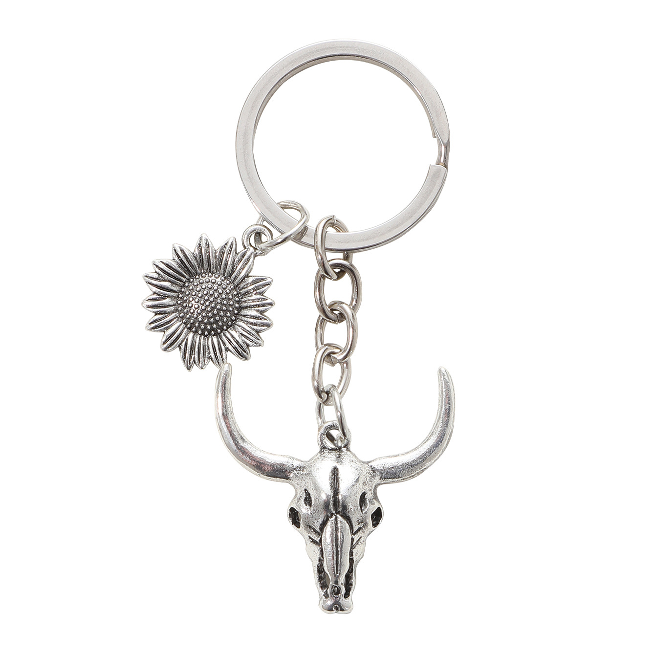 新款农场合金牛头钥匙扣汽车挂件合金向日葵配件跨进欧美亚马逊