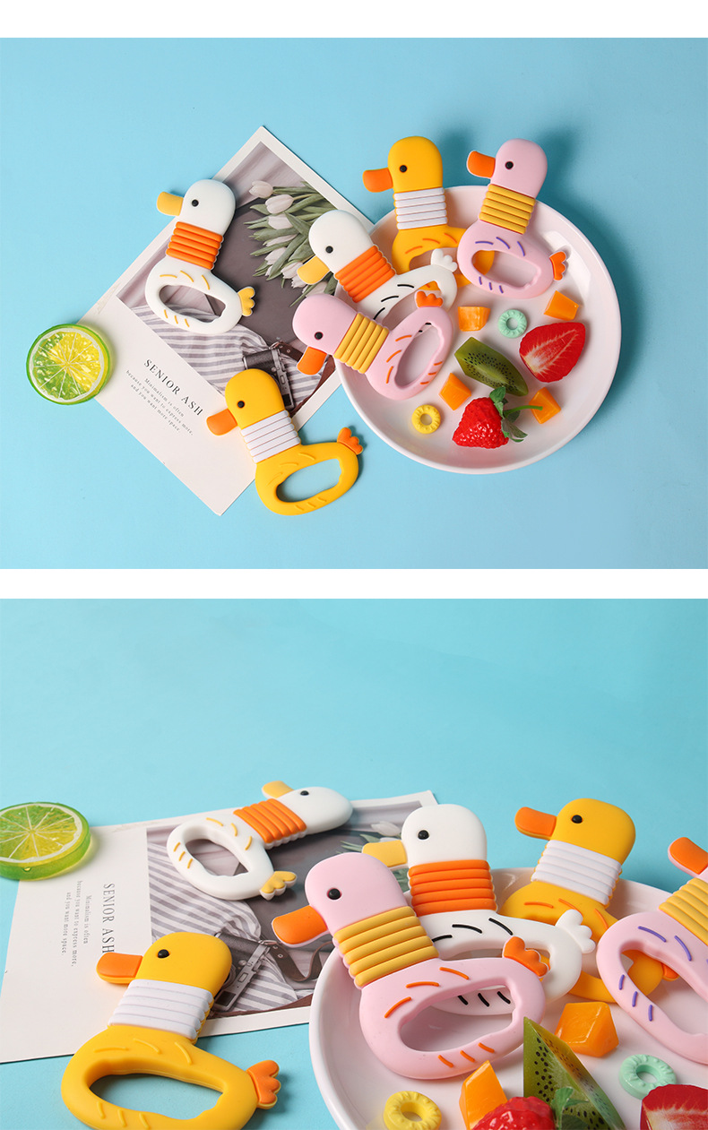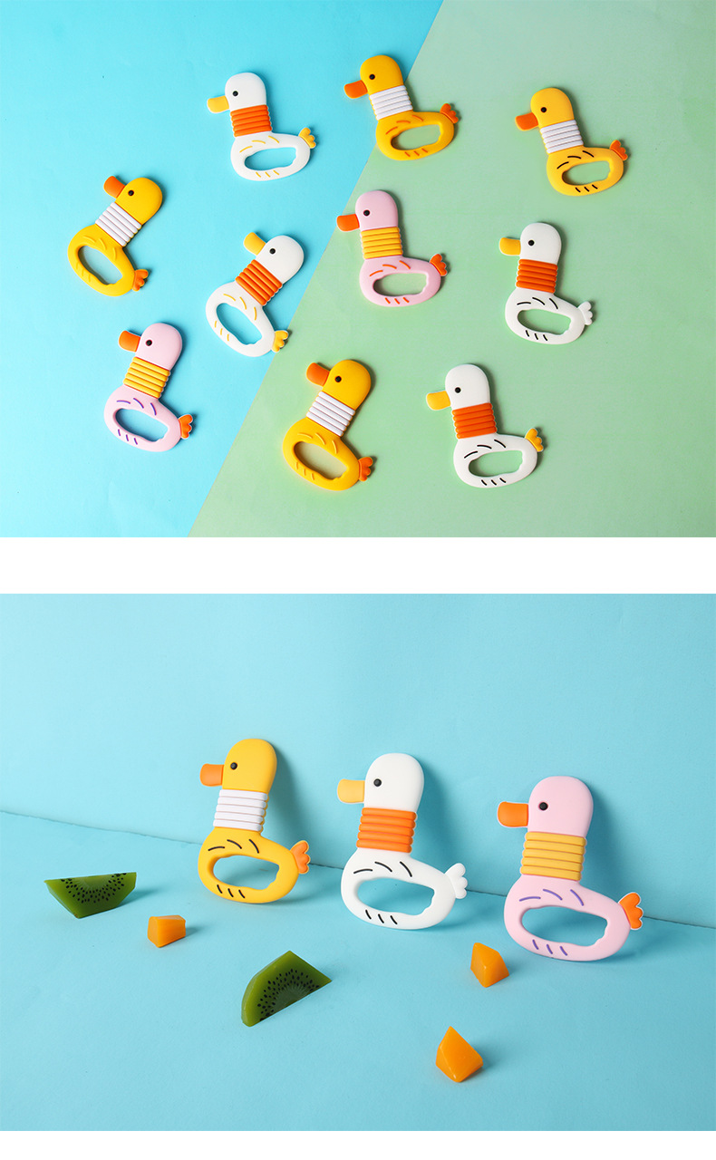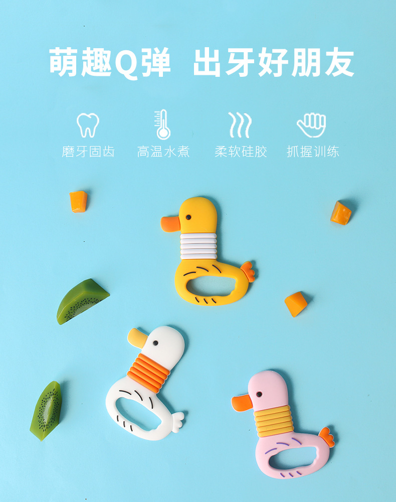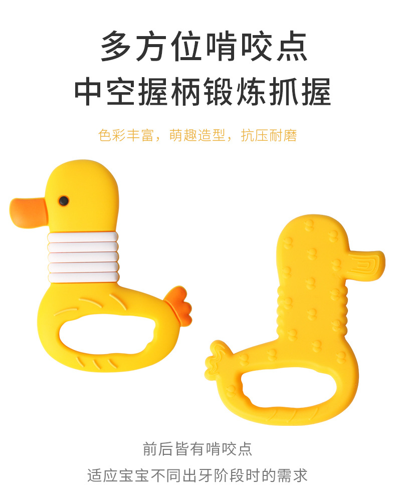 宝宝牙胶磨牙棒婴儿小鸭子硅胶玩具出牙安抚咬胶防吃手神器可水煮