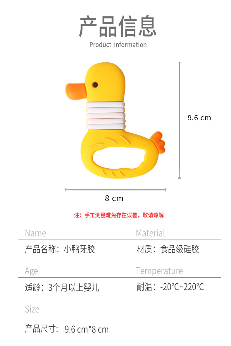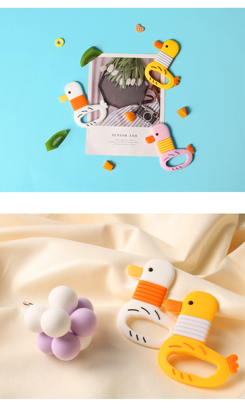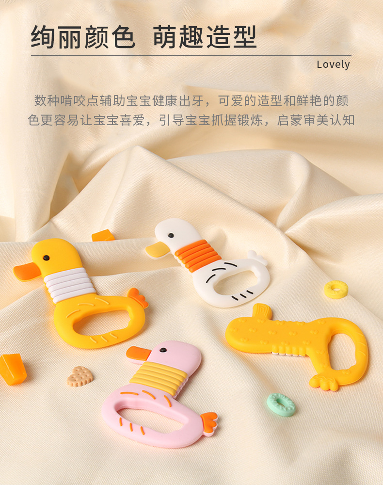 宝宝牙胶磨牙棒婴儿小鸭子硅胶玩具出牙安抚咬胶防吃手神器可水煮