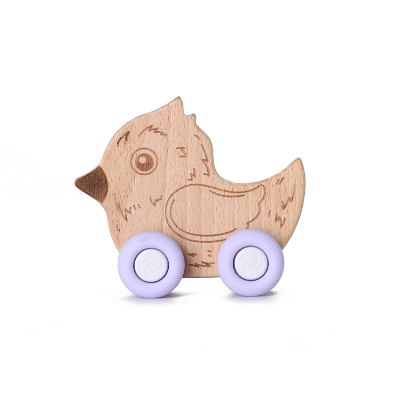 宝宝榉木牙胶儿童爆款木头小鸡车子玩具婴儿安抚咬胶小车硅胶