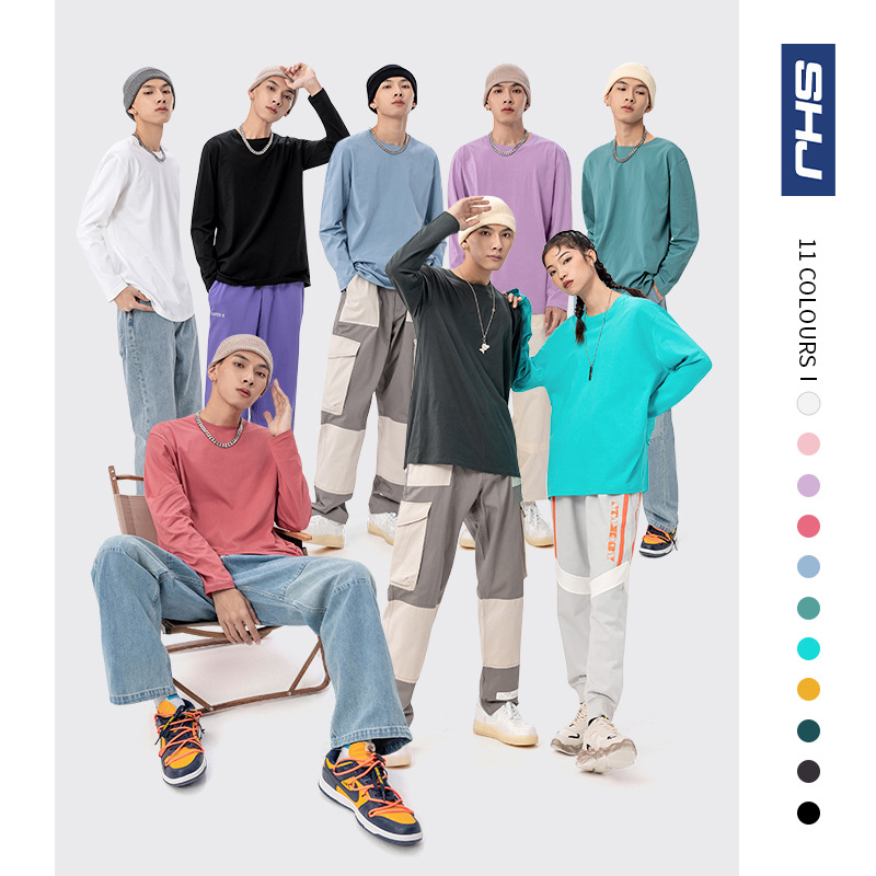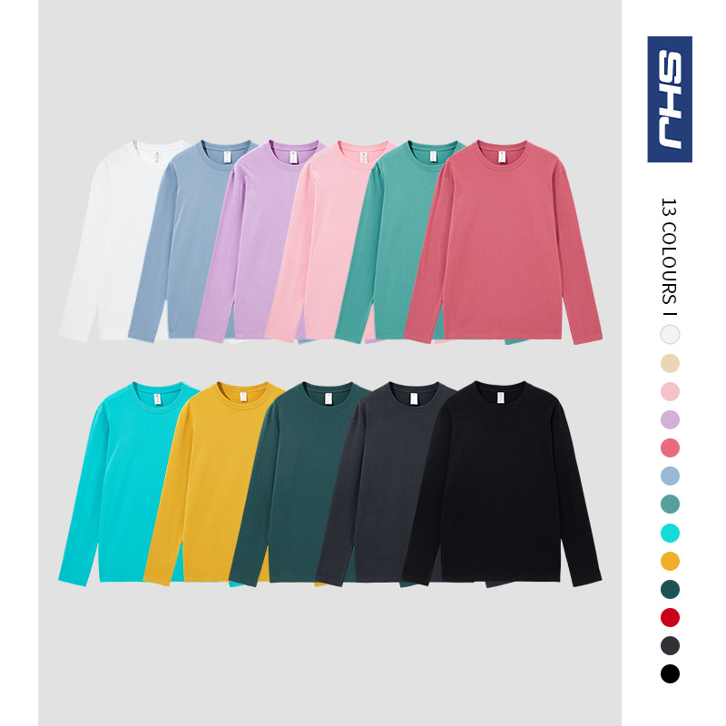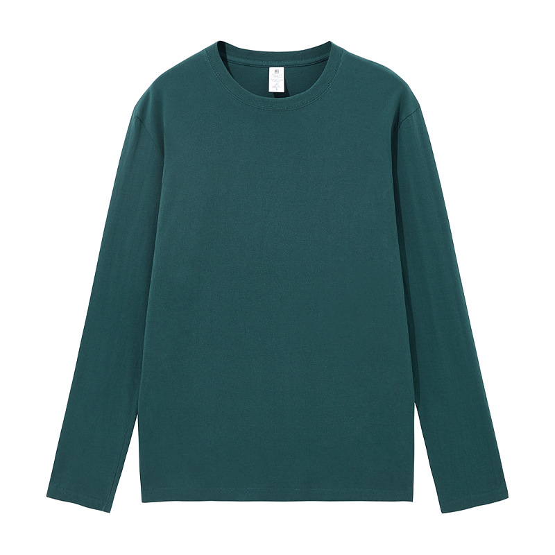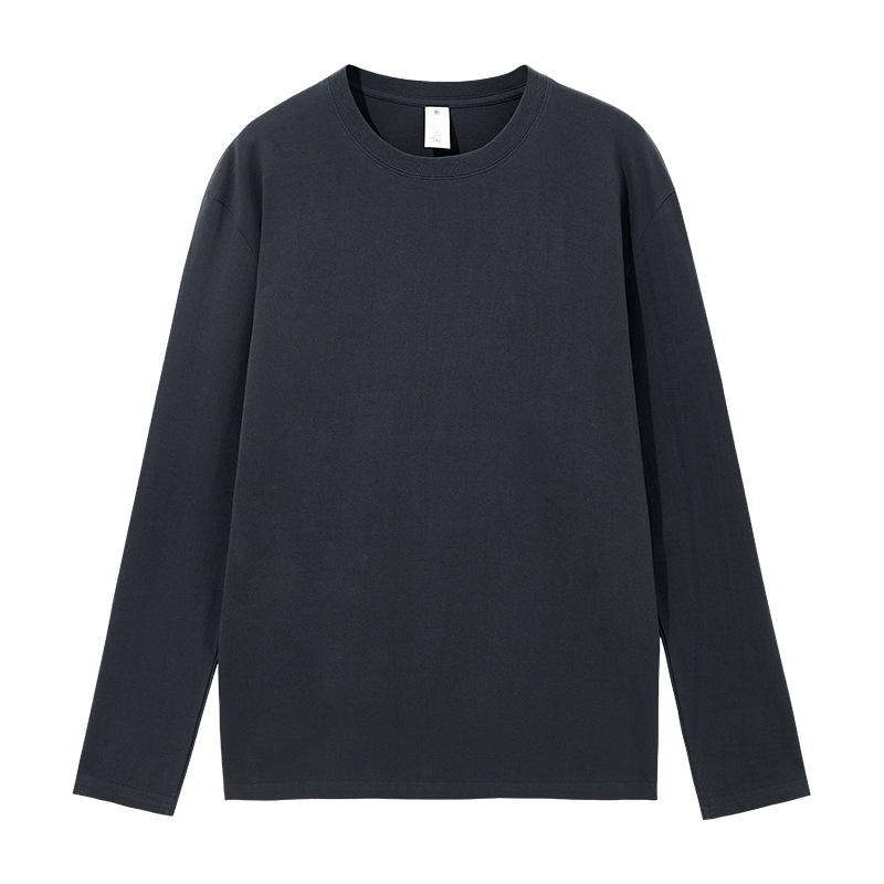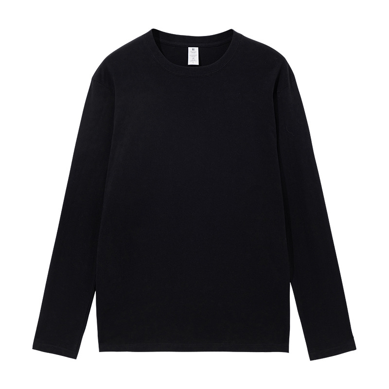220克新疆精梳紧密短袖全棉重磅圆领纯色长袖男式t恤宽松打底衫男