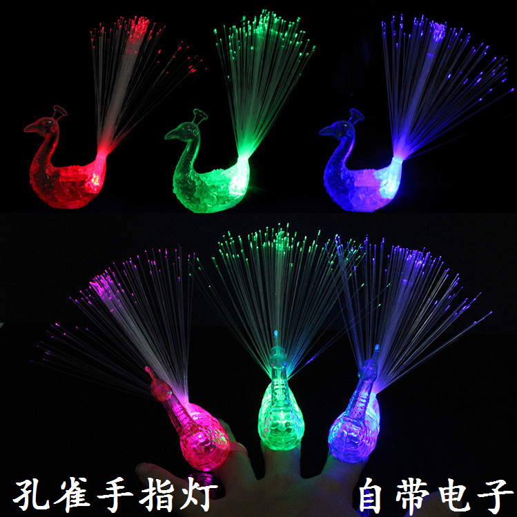 孔雀手指灯发光变色孔雀开屏光纤灯儿童地摊夜市货源发光玩具批发