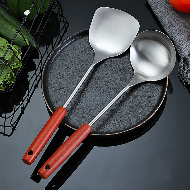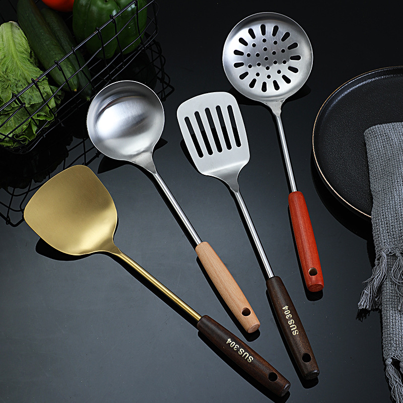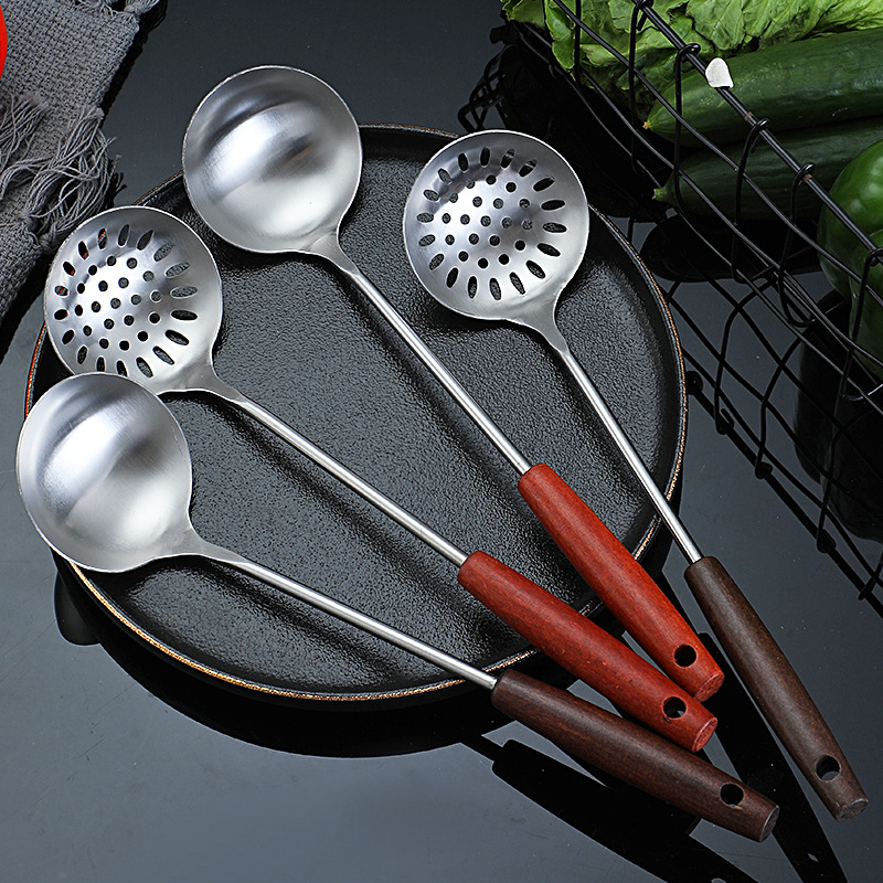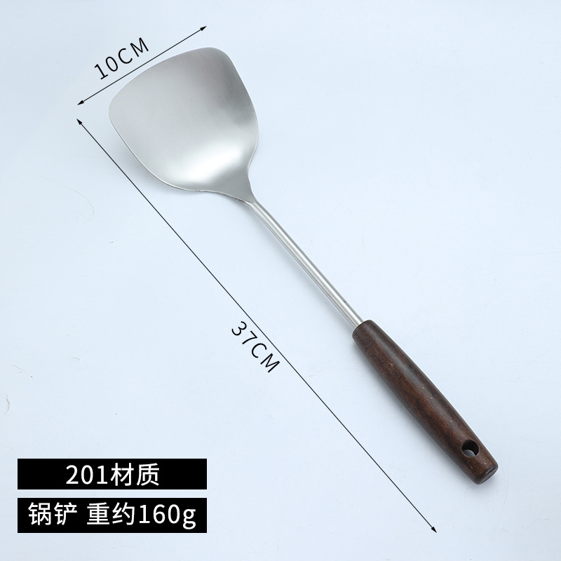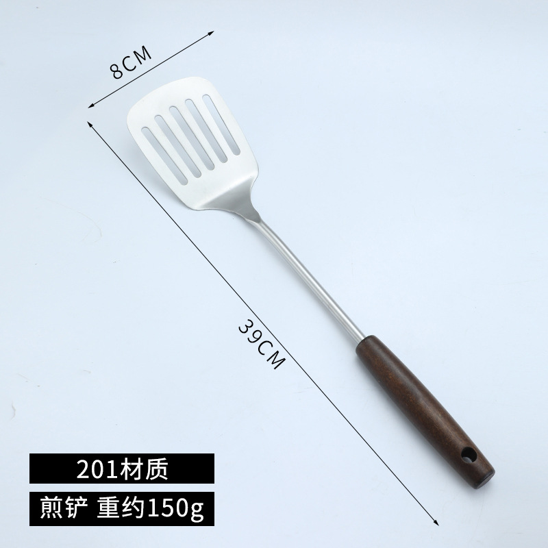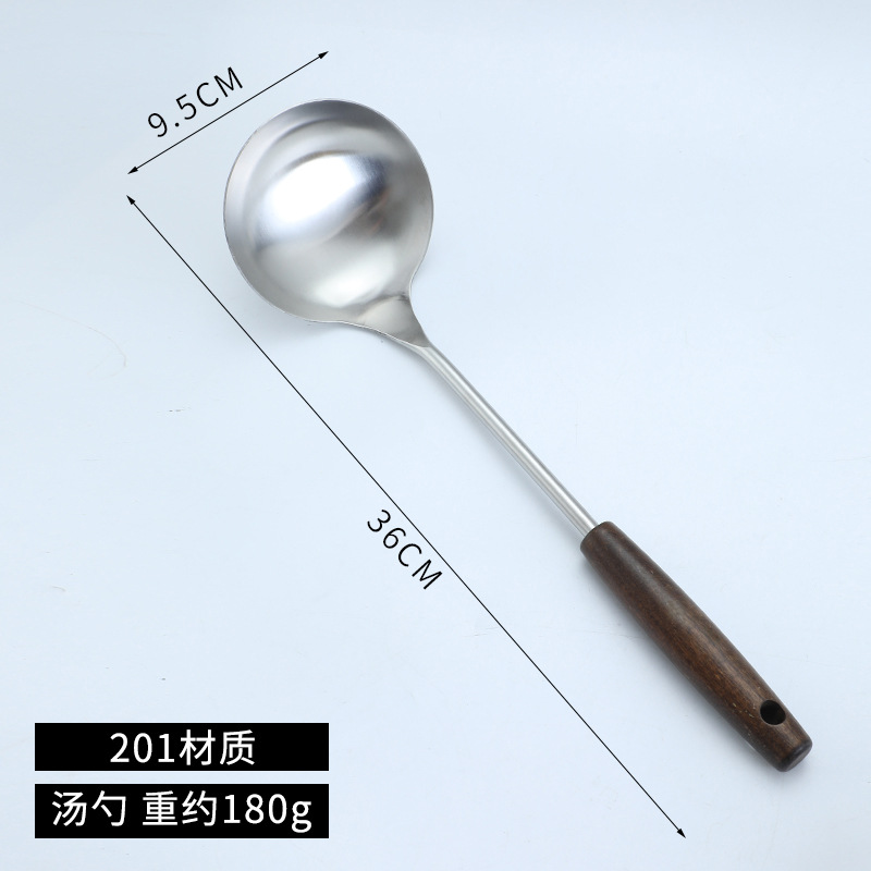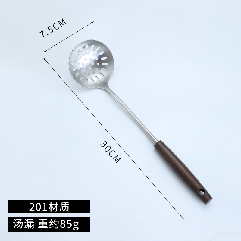 家庭用品跨境厨具 304汤勺不锈钢煎铲木柄锅铲漏勺家用勺子批发