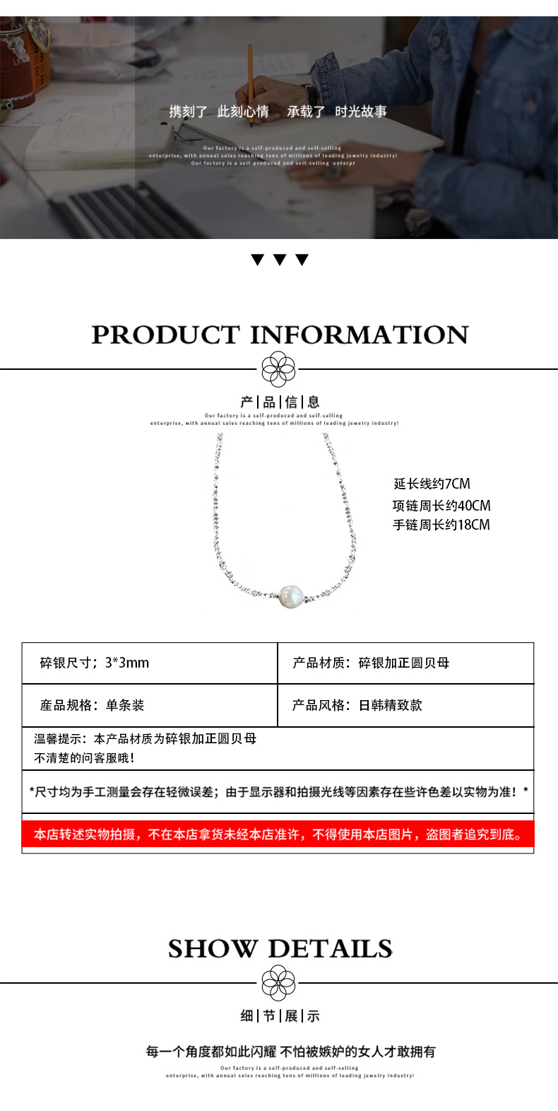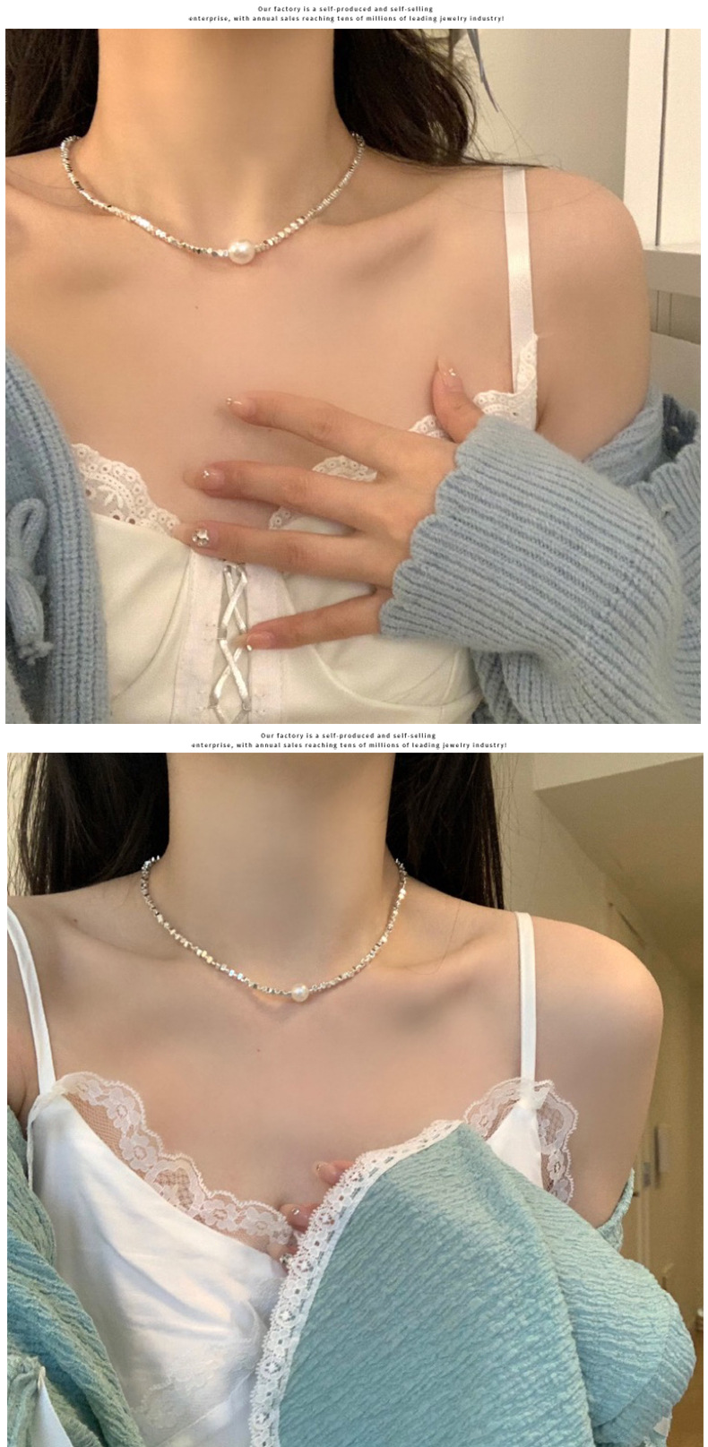 新款简约碎银子珍珠潮项链手链 女日常轻奢小众精致夏季百搭项饰