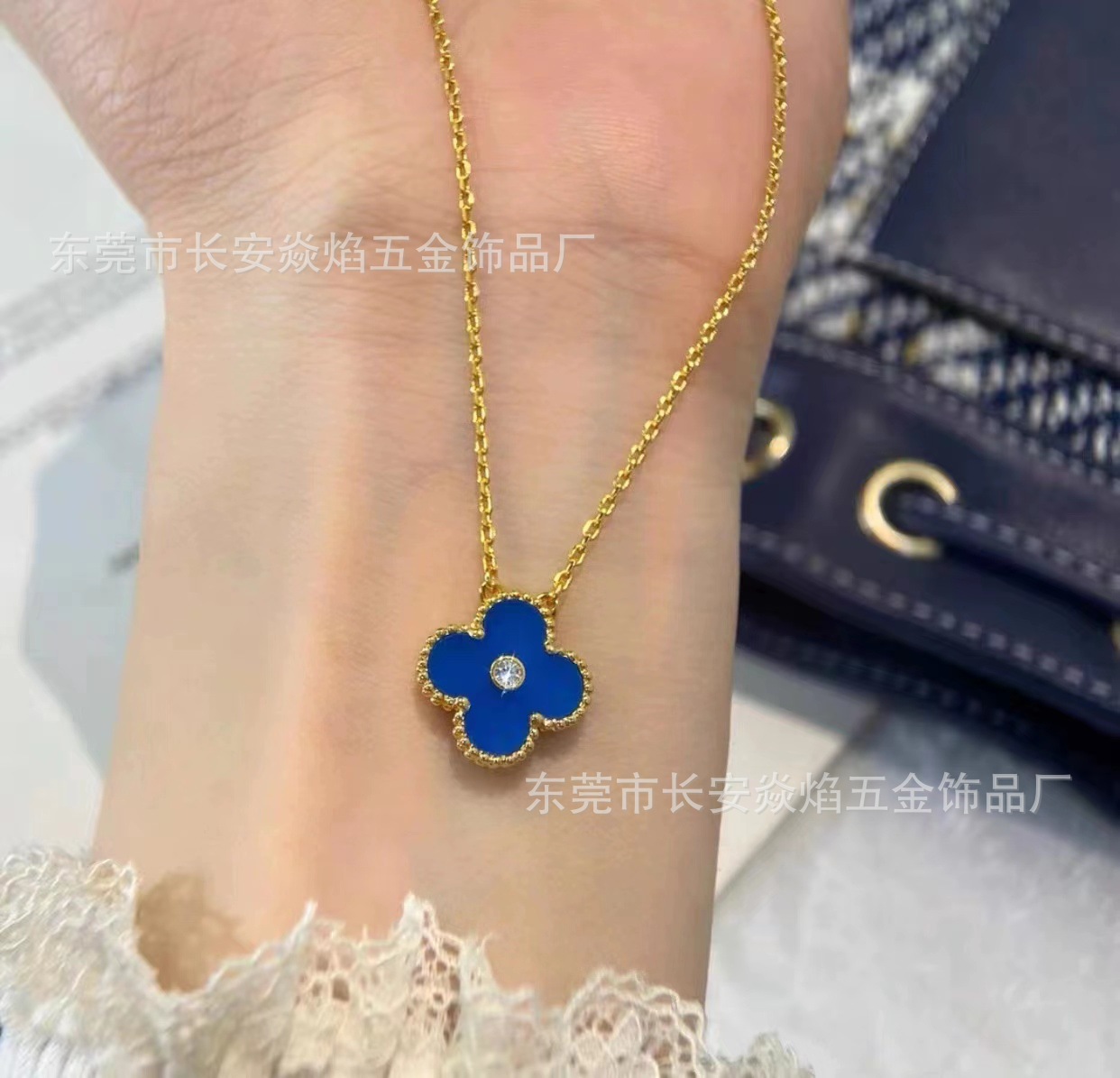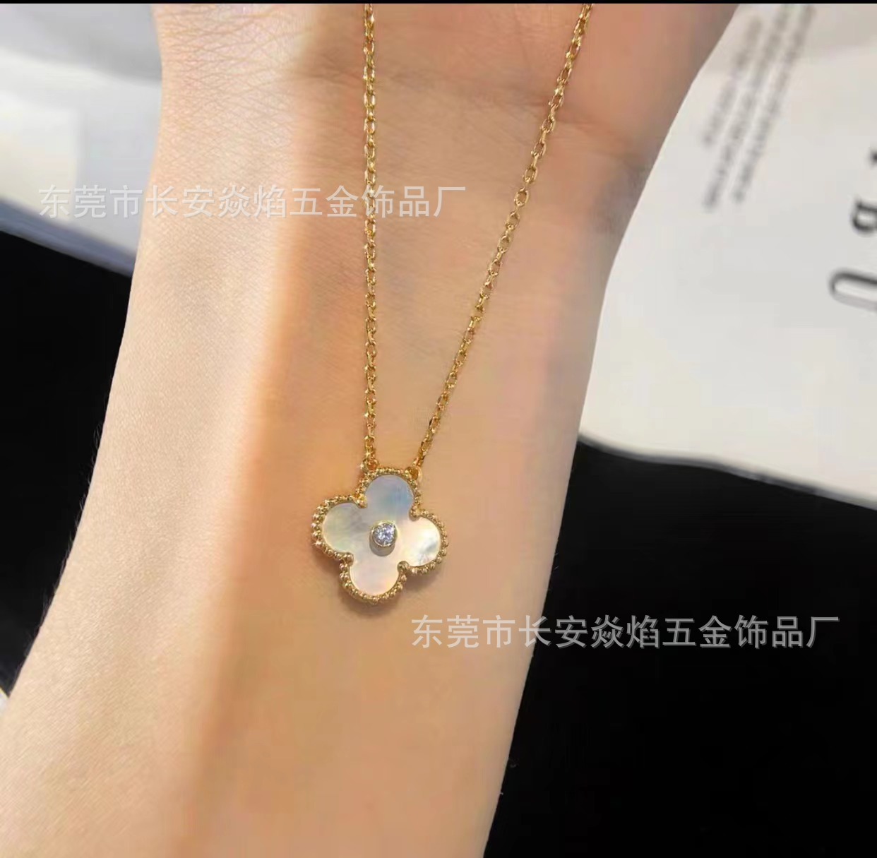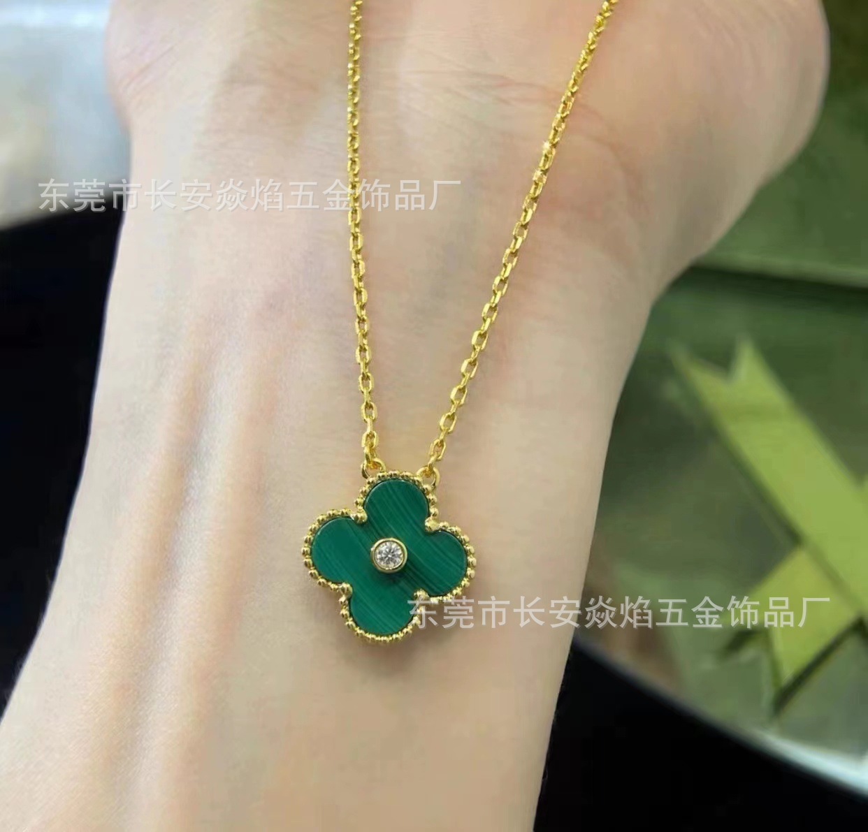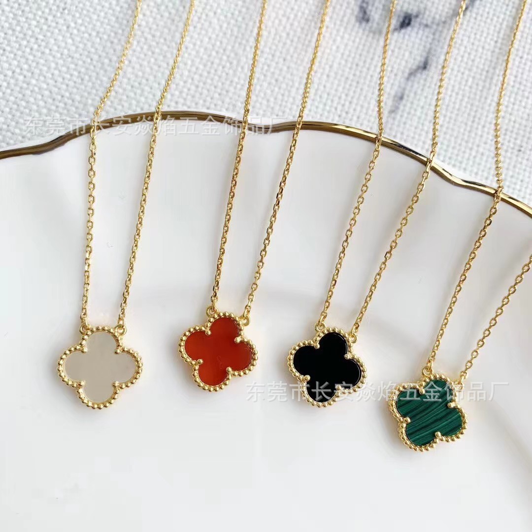 韩国幸运四叶草项链不锈钢吊坠镶钻网红爆款锁骨链饰品女简