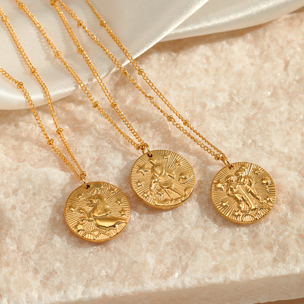 亚马逊爆款十二星座不锈钢项链时尚百搭小众设计感星座浮雕锁骨链