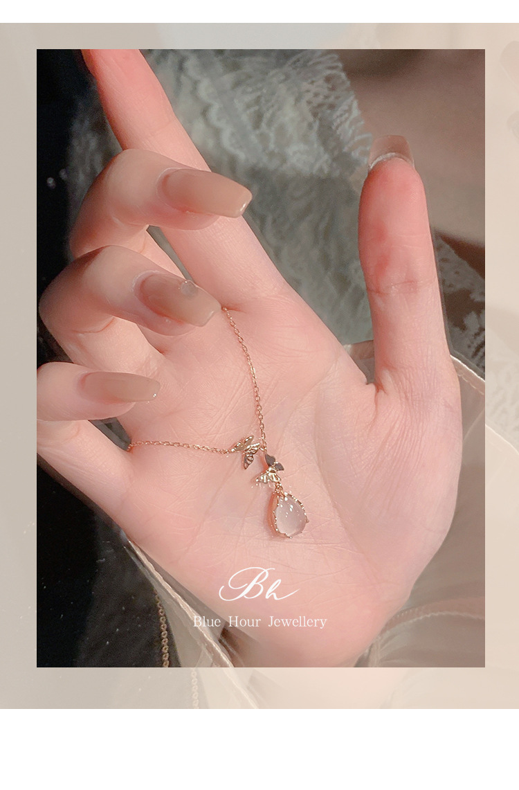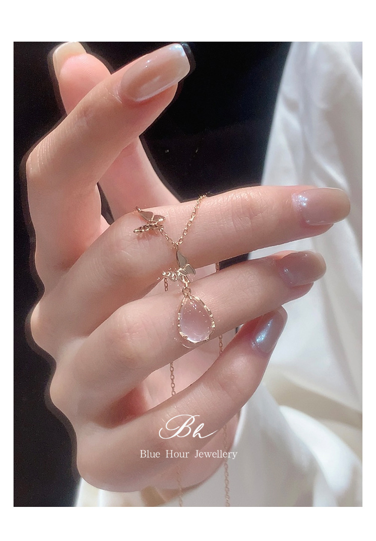 新款玉髓蝴蝶项链女轻奢简约气质水滴吊坠小众设计感百搭潮锁骨链