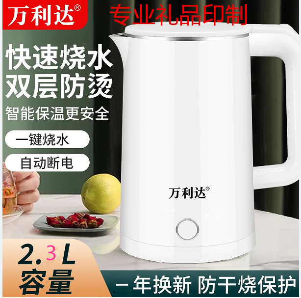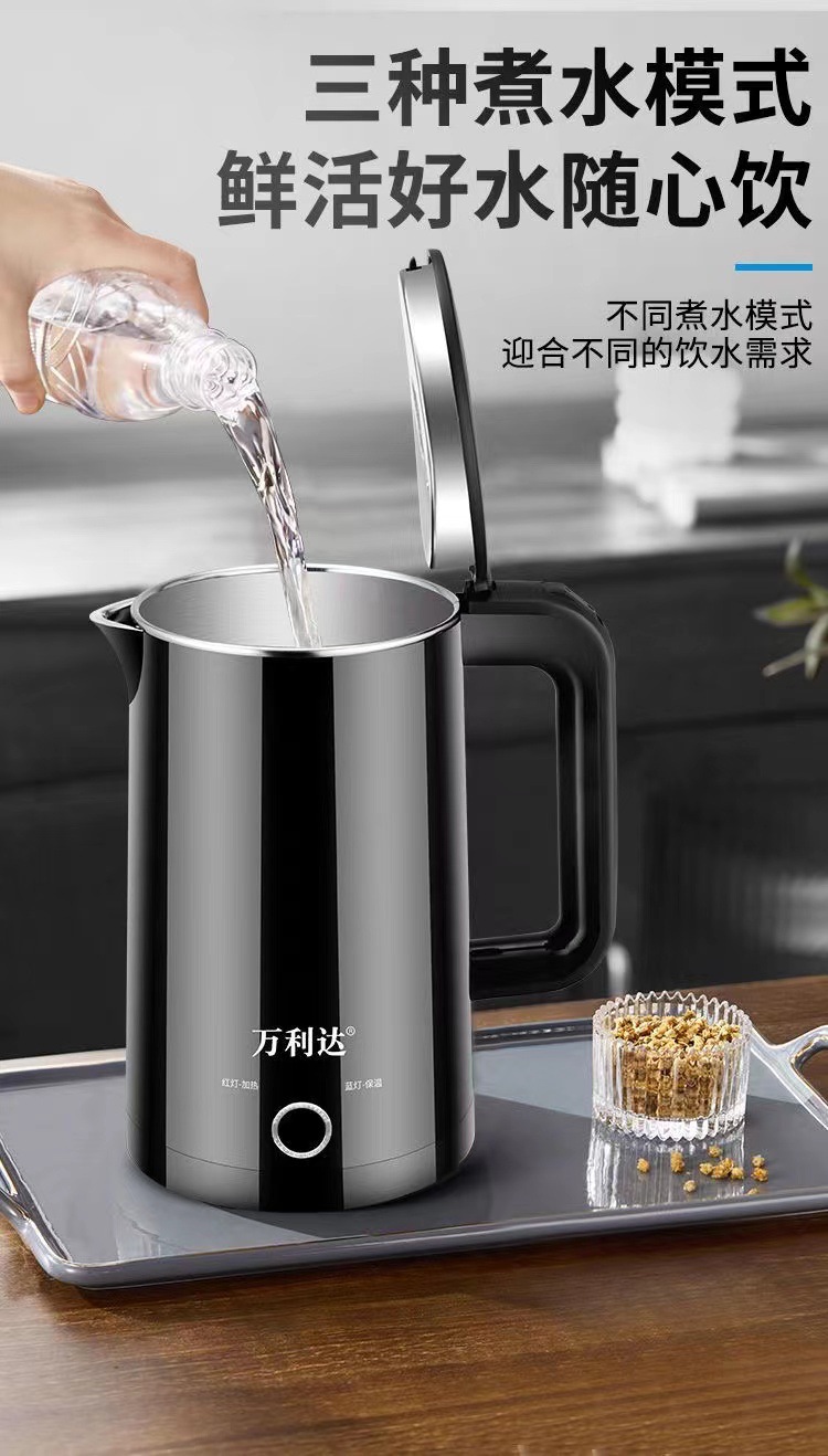 万利达电热水壶304大容量家用快速烧水壶礼品批发防烫自动断电