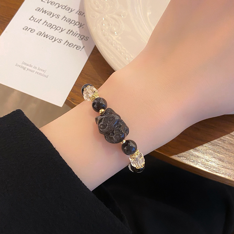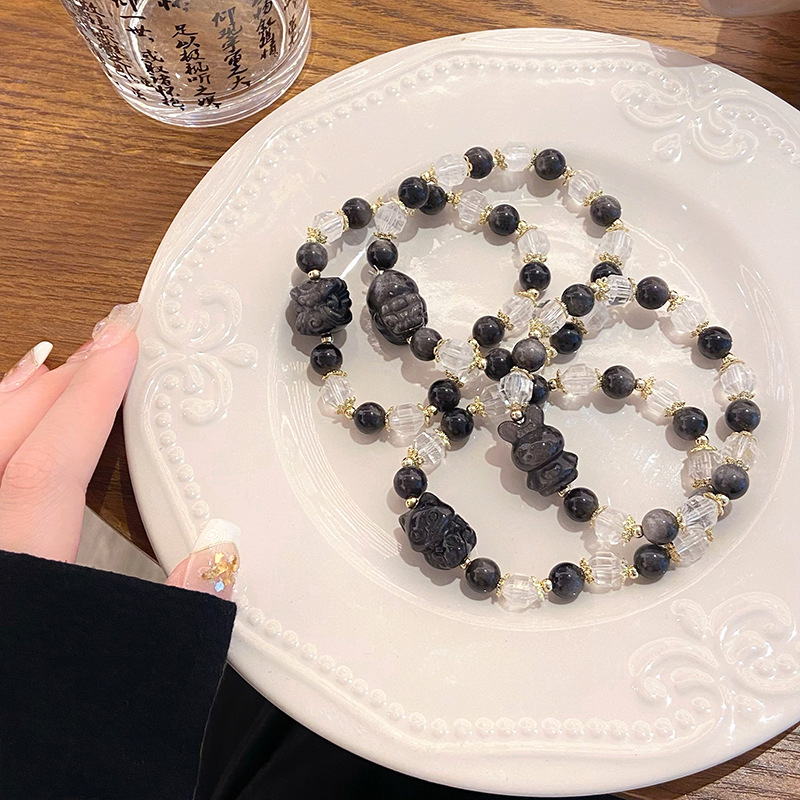 闪耀气质~超仙轻奢设计黑曜石貔貅手串甜美清新水晶混穿闺蜜手链