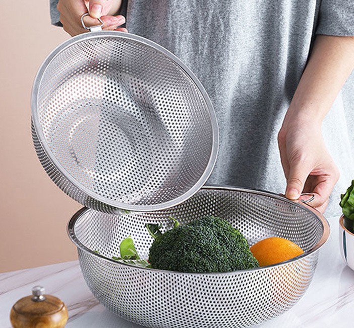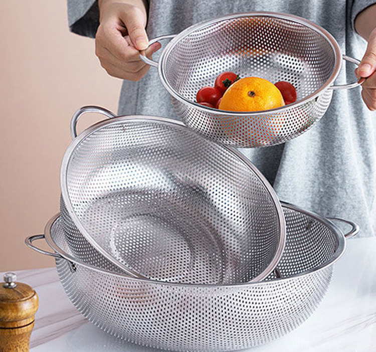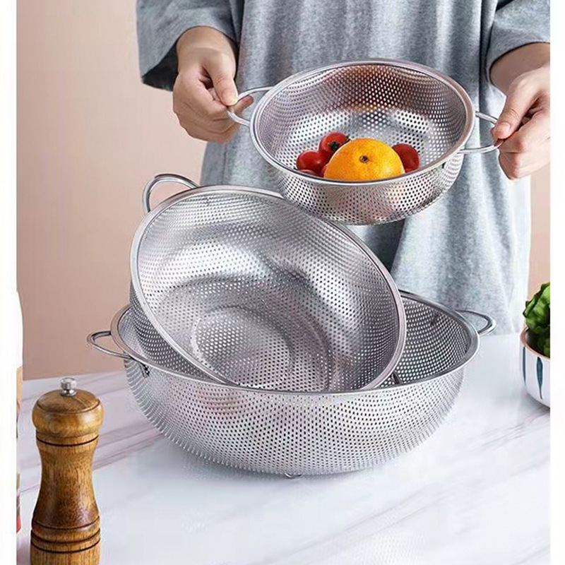 不锈钢沥水篮加厚家用厨房密孔多用篮单双耳漏盆水果洗菜篮洗米筛
