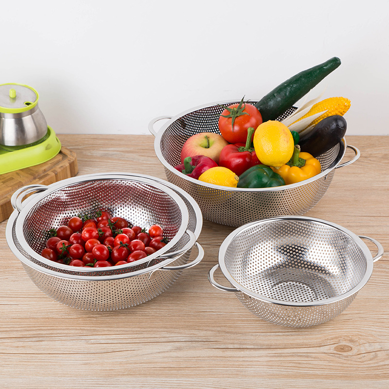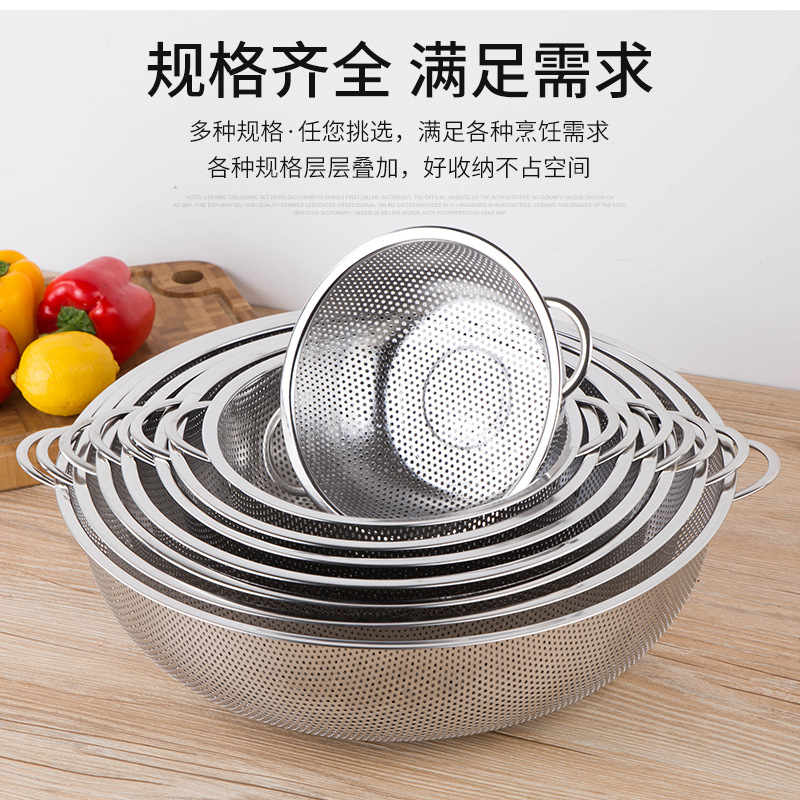 宏发不锈钢沥水篮双耳加深密孔篮家用淘米洗菜篮水果篮洗米筛多用