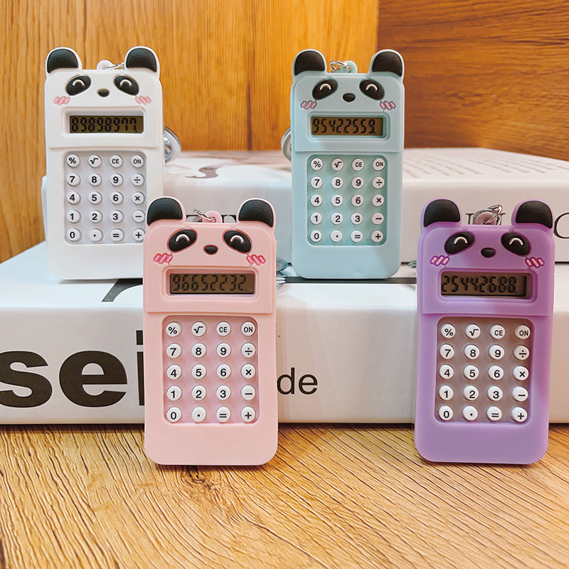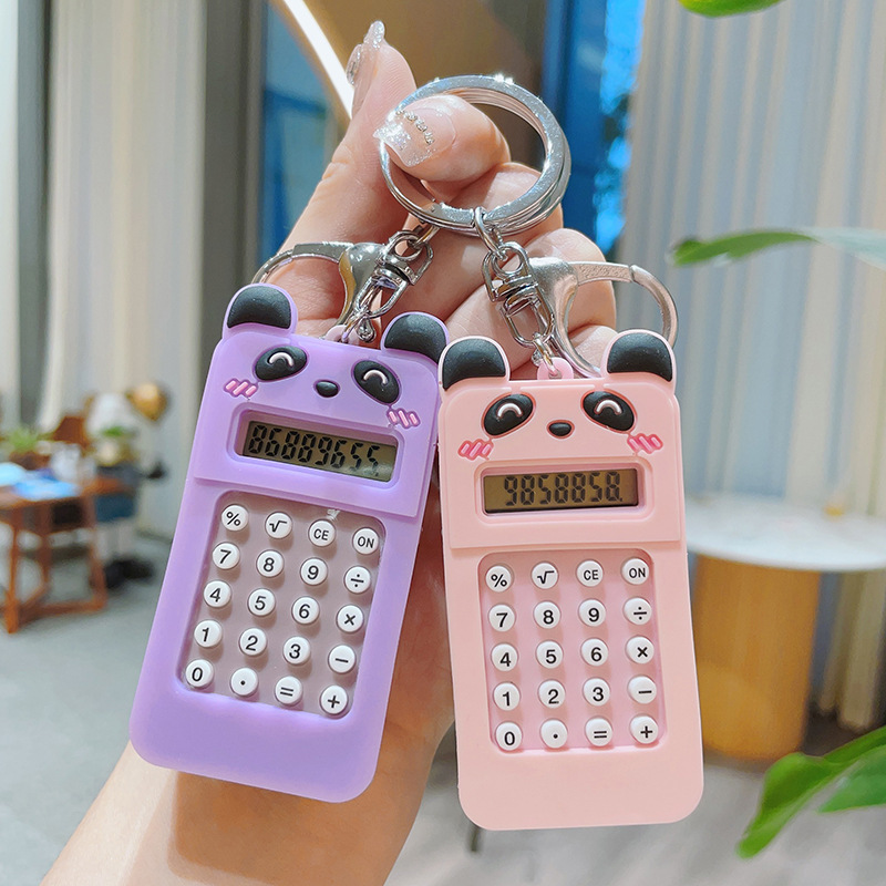 创意熊猫计算器钥匙扣汽车钥匙链学生便携书包挂件爪机小礼品批发