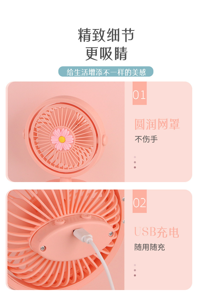2025小雏菊桌面夹子风扇批发 带灯夜光USB充电可制定logo风扇厂家