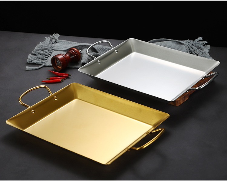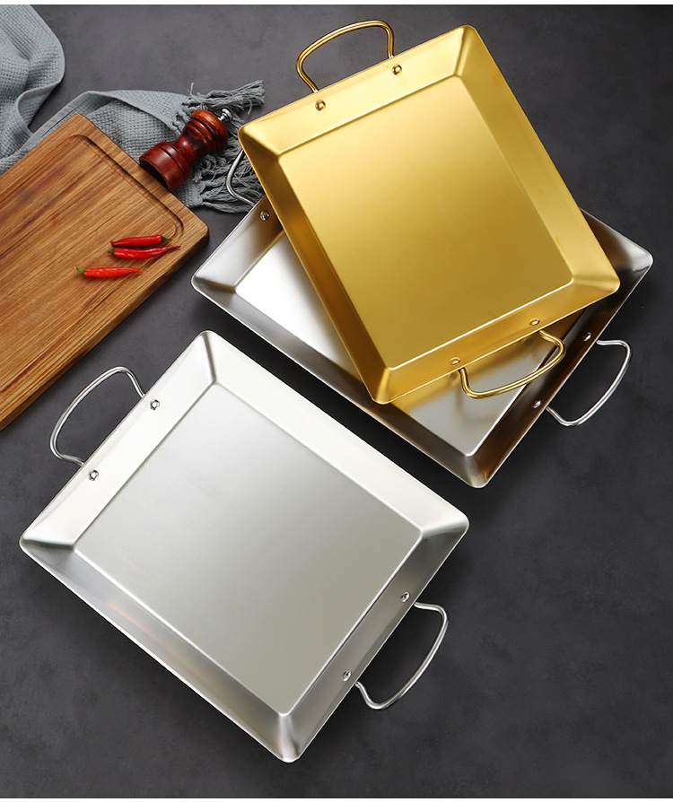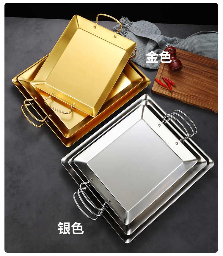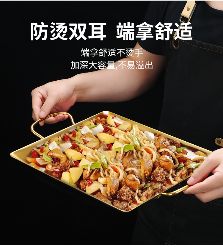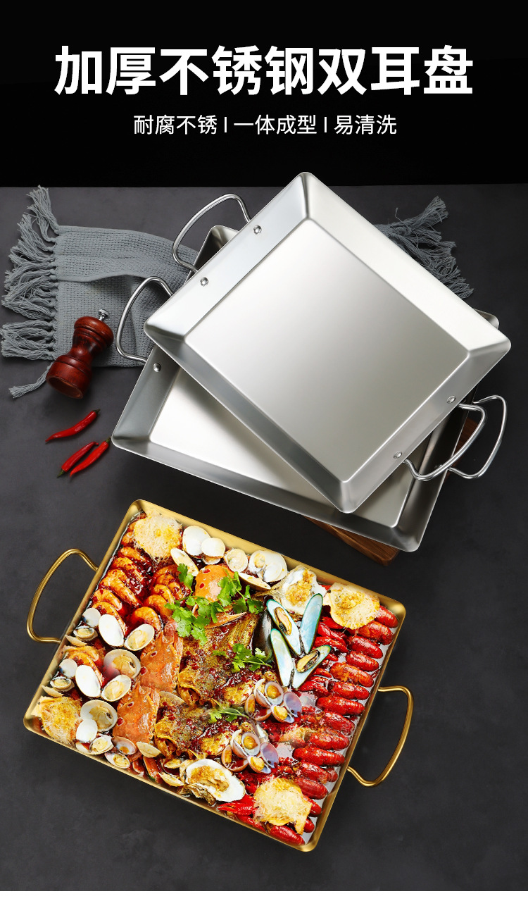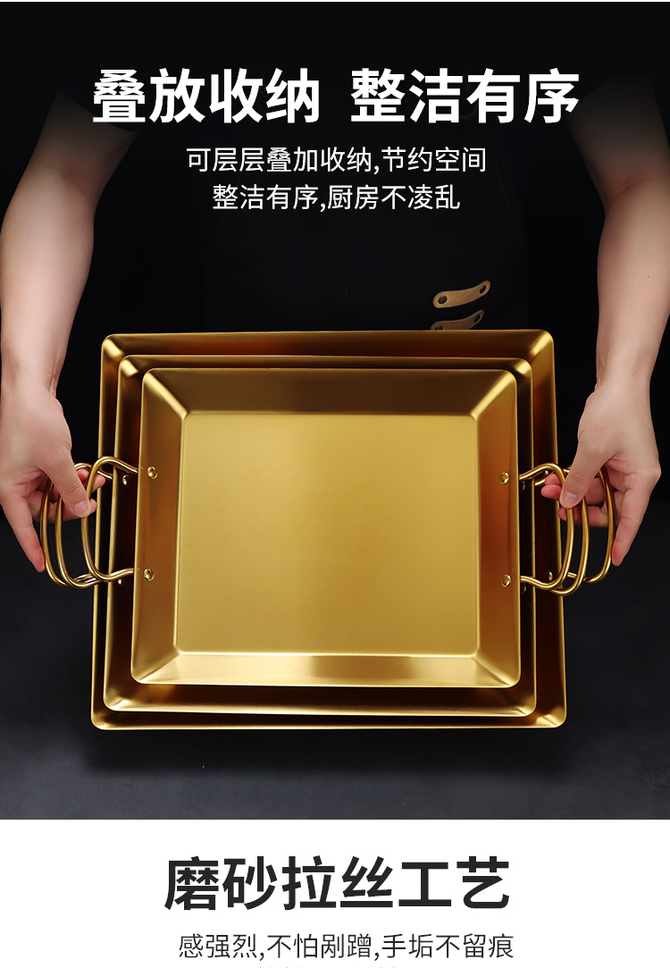 韩式不锈钢海鲜锅金色正方形龙虾盘酒精干锅盘章鱼锅刺身大咖盘子