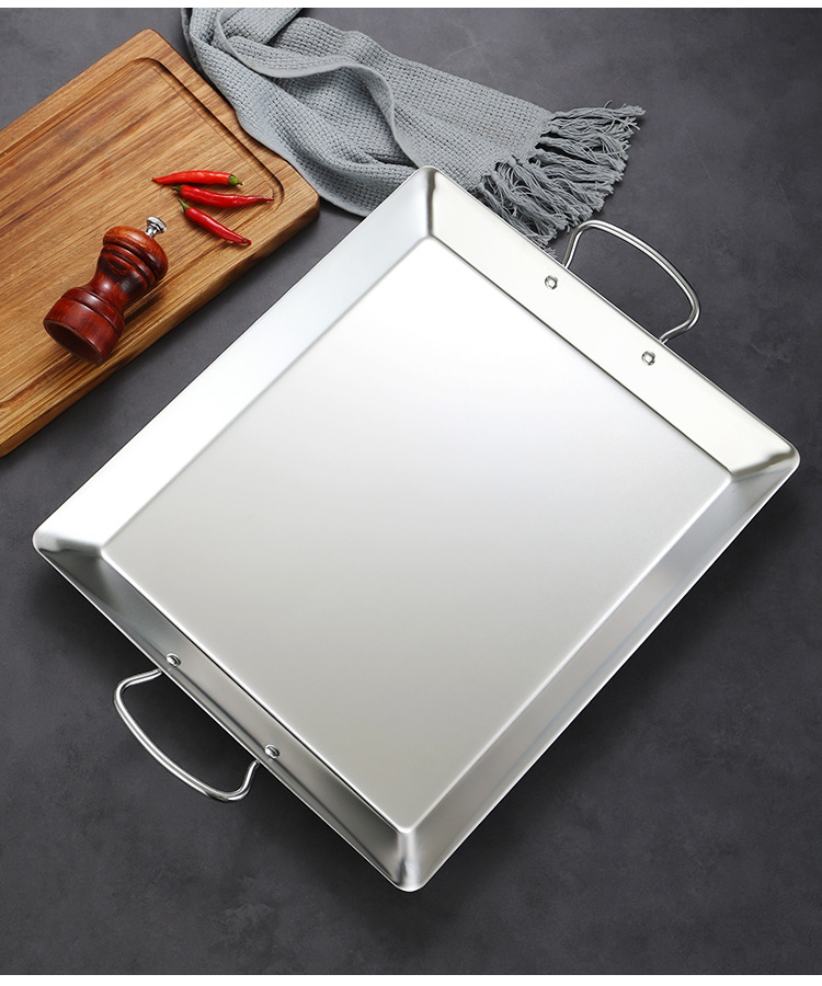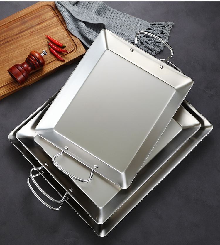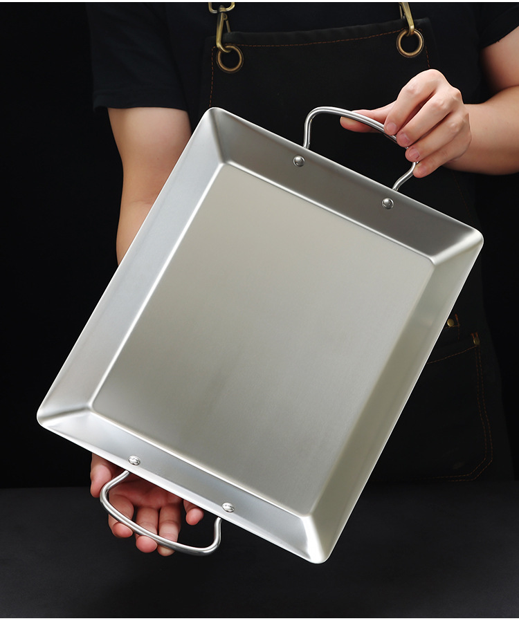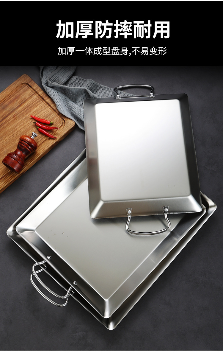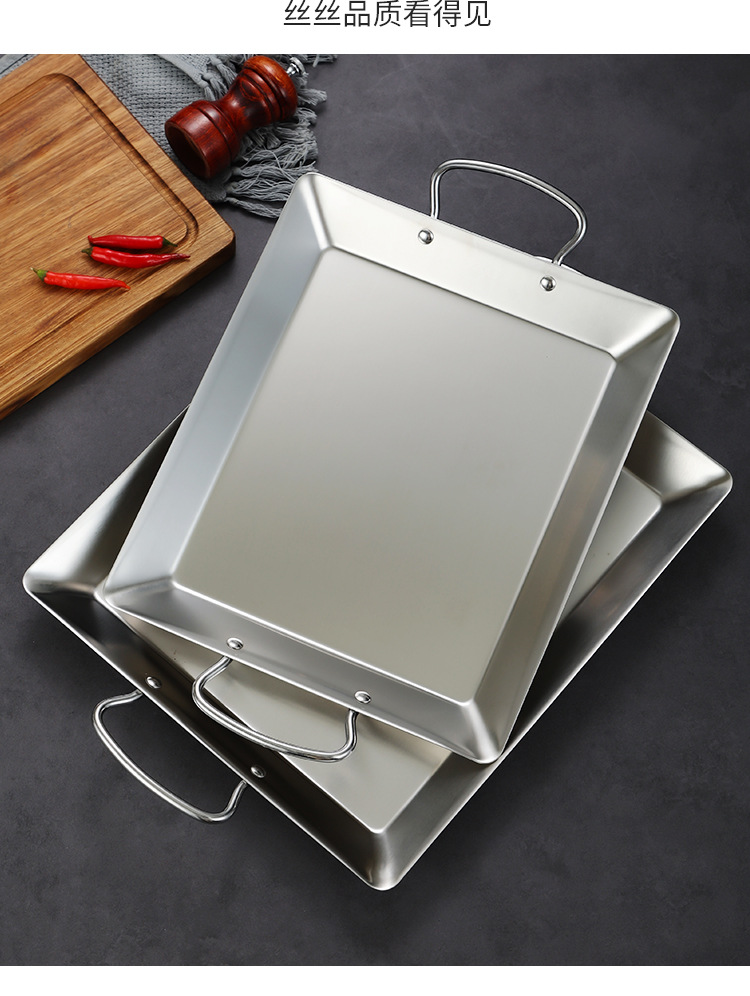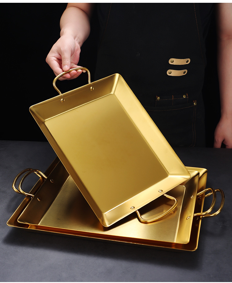韩式不锈钢海鲜锅金色正方形龙虾盘酒精干锅盘章鱼锅刺身大咖盘子