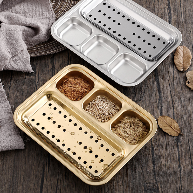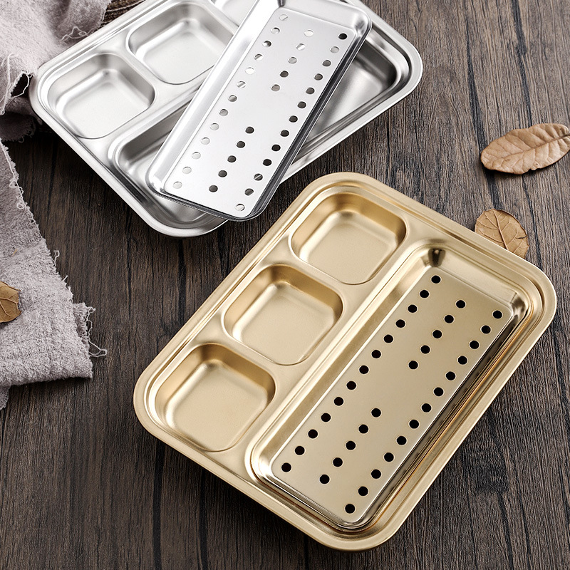 韩式304不锈钢烤肉蘸料一体碟金色火锅三格调料盘酱料盘分格餐盘