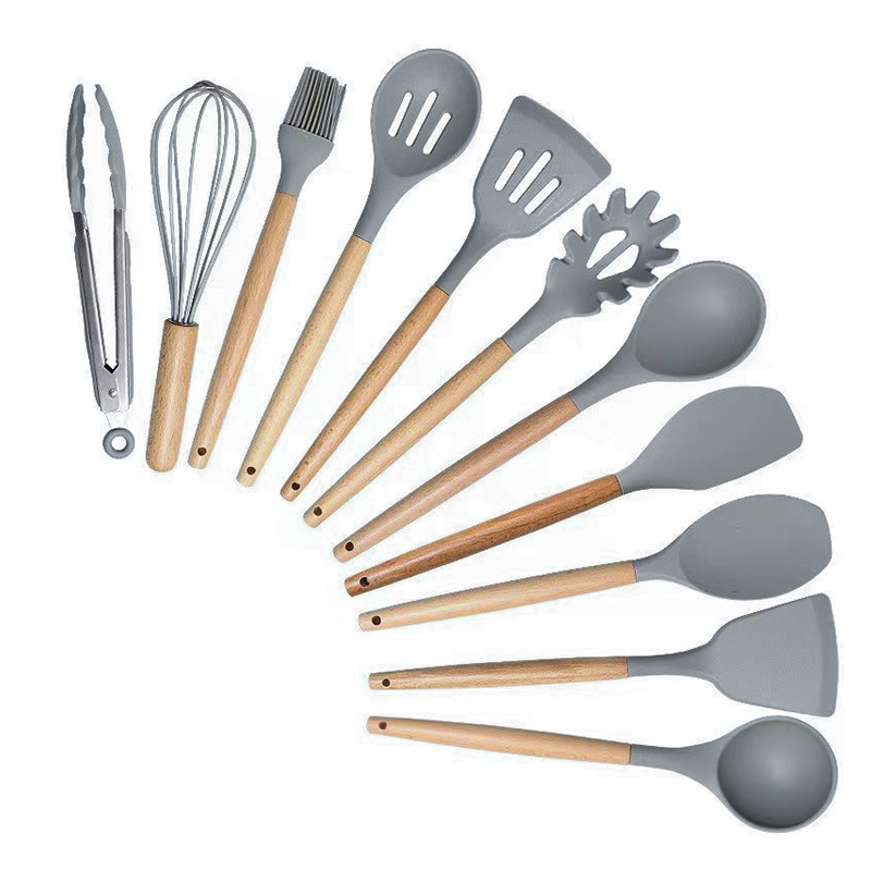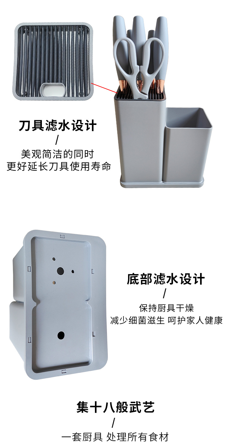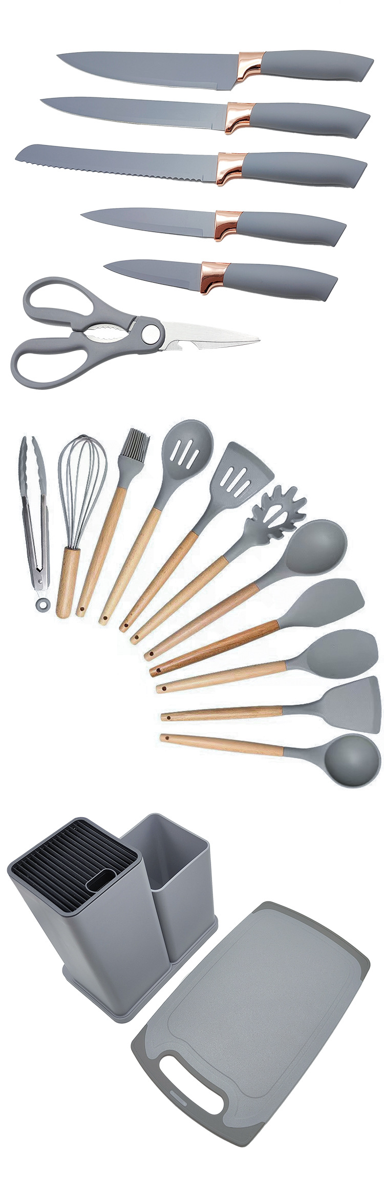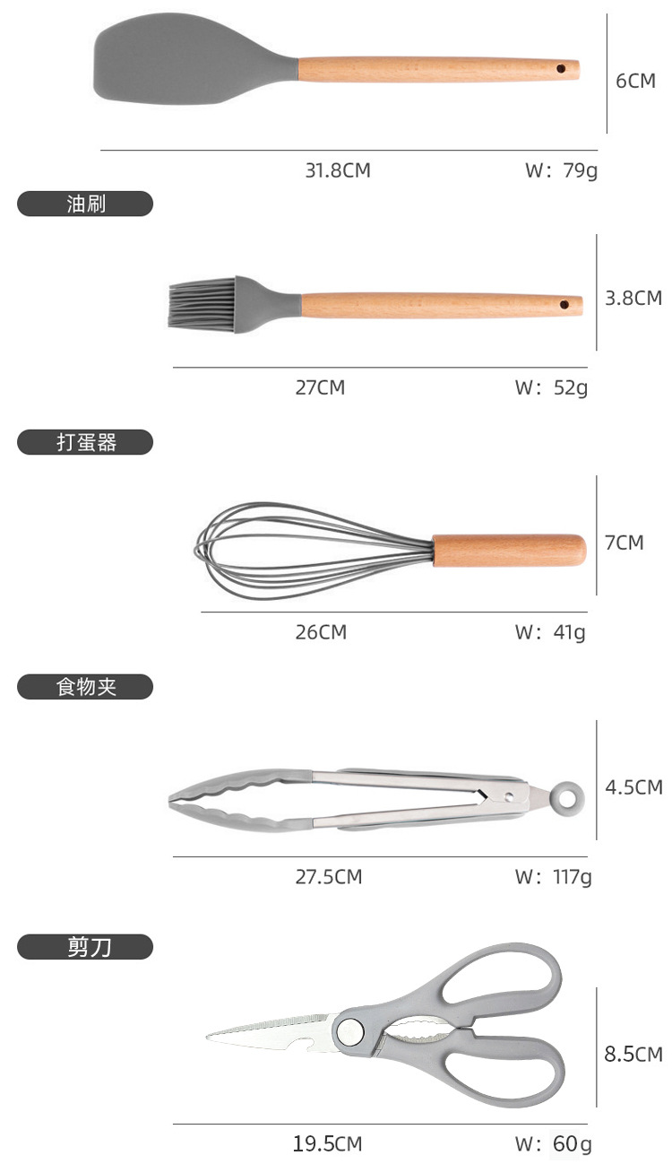 厂家现货厨具批发彩盒刀剪砧板锅铲勺子19件套木柄硅胶厨具套装