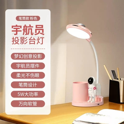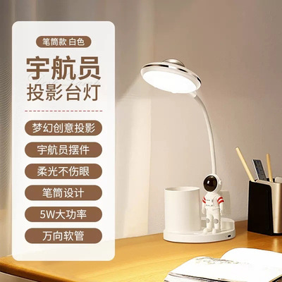 2023新款宇航员台灯投影灯学生护眼学习桌面usb笔筒台灯礼品批发