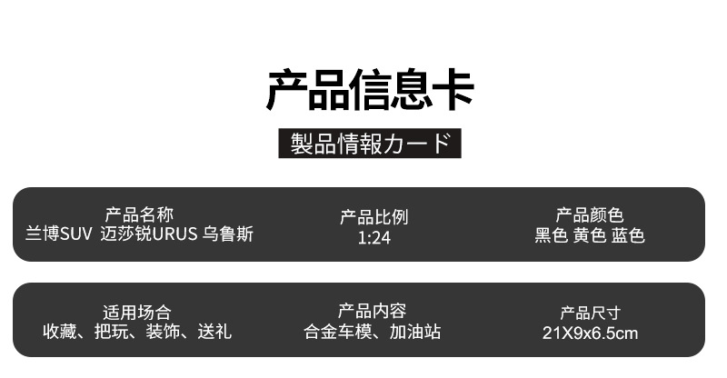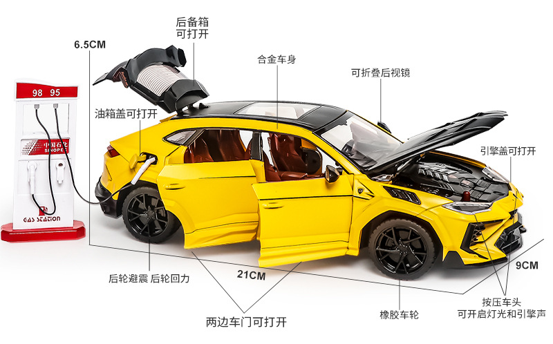 1:24兰博suv机尼迈锐莎改装版回力声光乌鲁斯合金玩具汽车模型