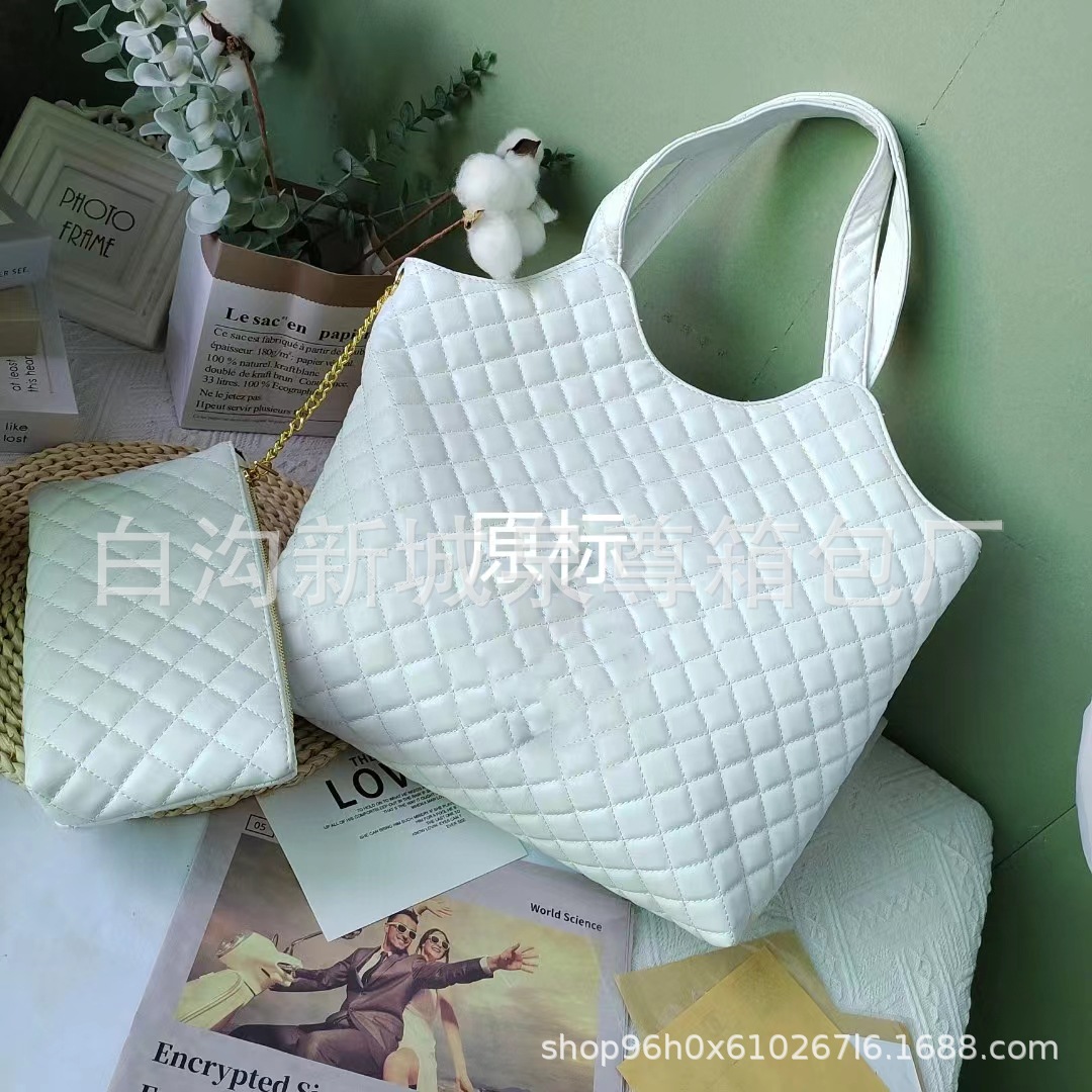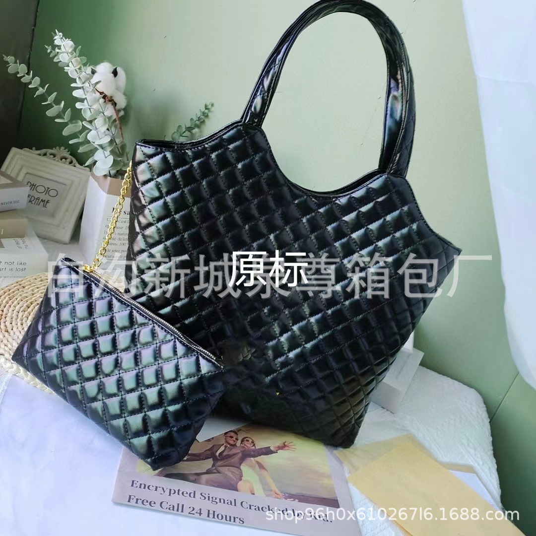 大容量手提包包2023热卖菱格纯色托特包简约时尚单肩包秋季百搭包
