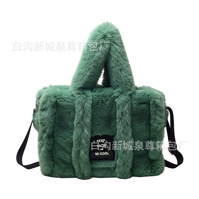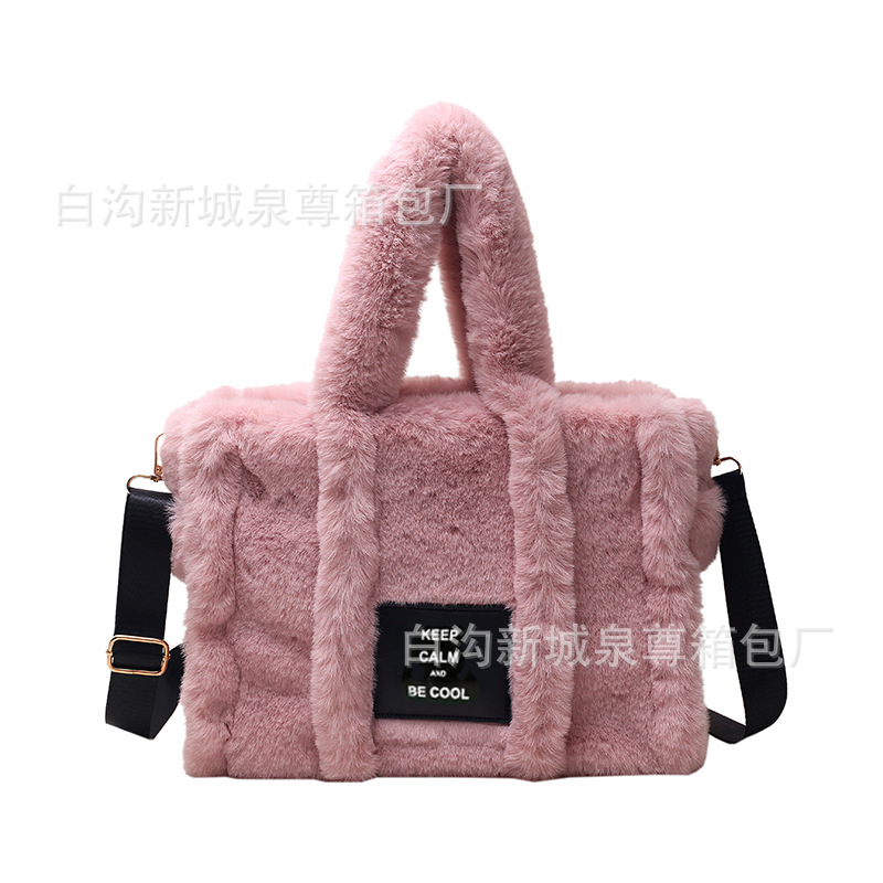 2022外贸秋冬新款仿毛毛绒托特包大容量购物通勤包欧美斜挎包包女
